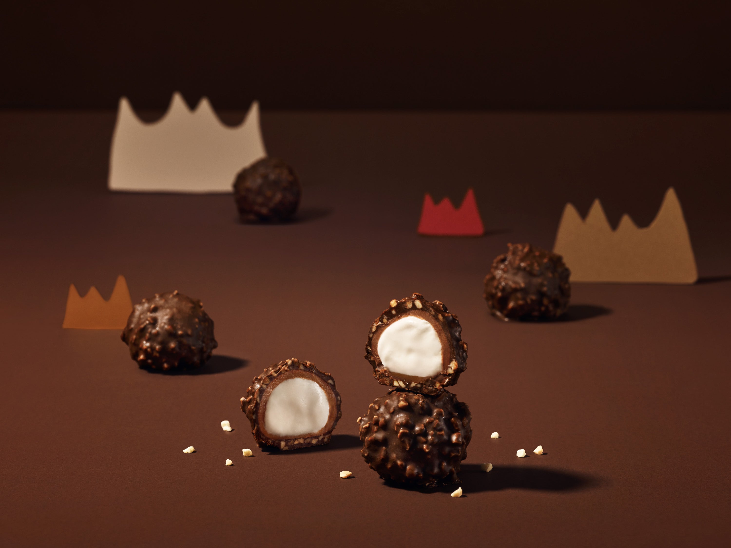 冬の放牧牛乳を加えた生クリームを生チョコレートで包んだ、まろやかな生トリュフチョコレートに、ザクザクとした食感のビターなアーモンドチョコレートを纏わせました。“パリッ・フワッ・トロッ”のトリプル食感を楽しめる、新登場の生トリュフアーモンドチョコレートです。