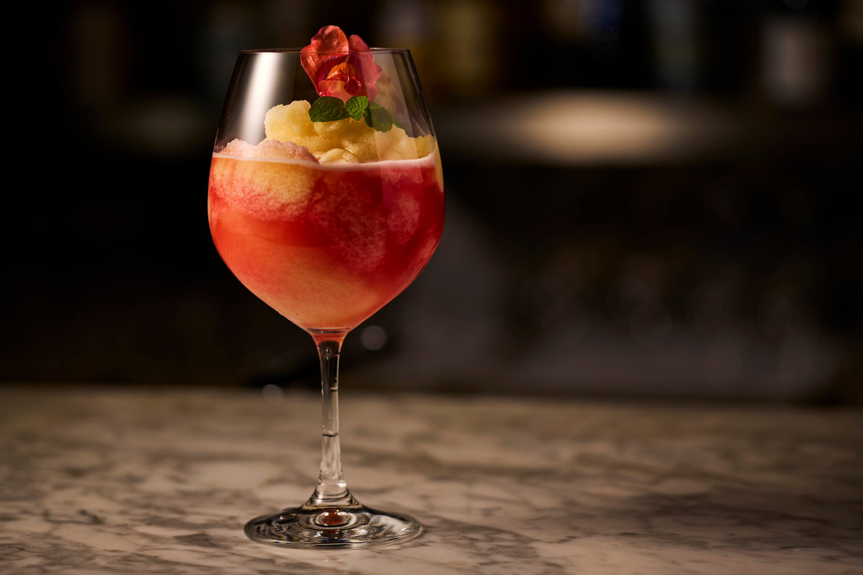『春の花咲くアフタヌーンティー』をご注文のお客様には、ノンアルコールカクテル『ペシェ ド ソレイユ~太陽のMoMo~』を特別ご優待料金にて提供します。