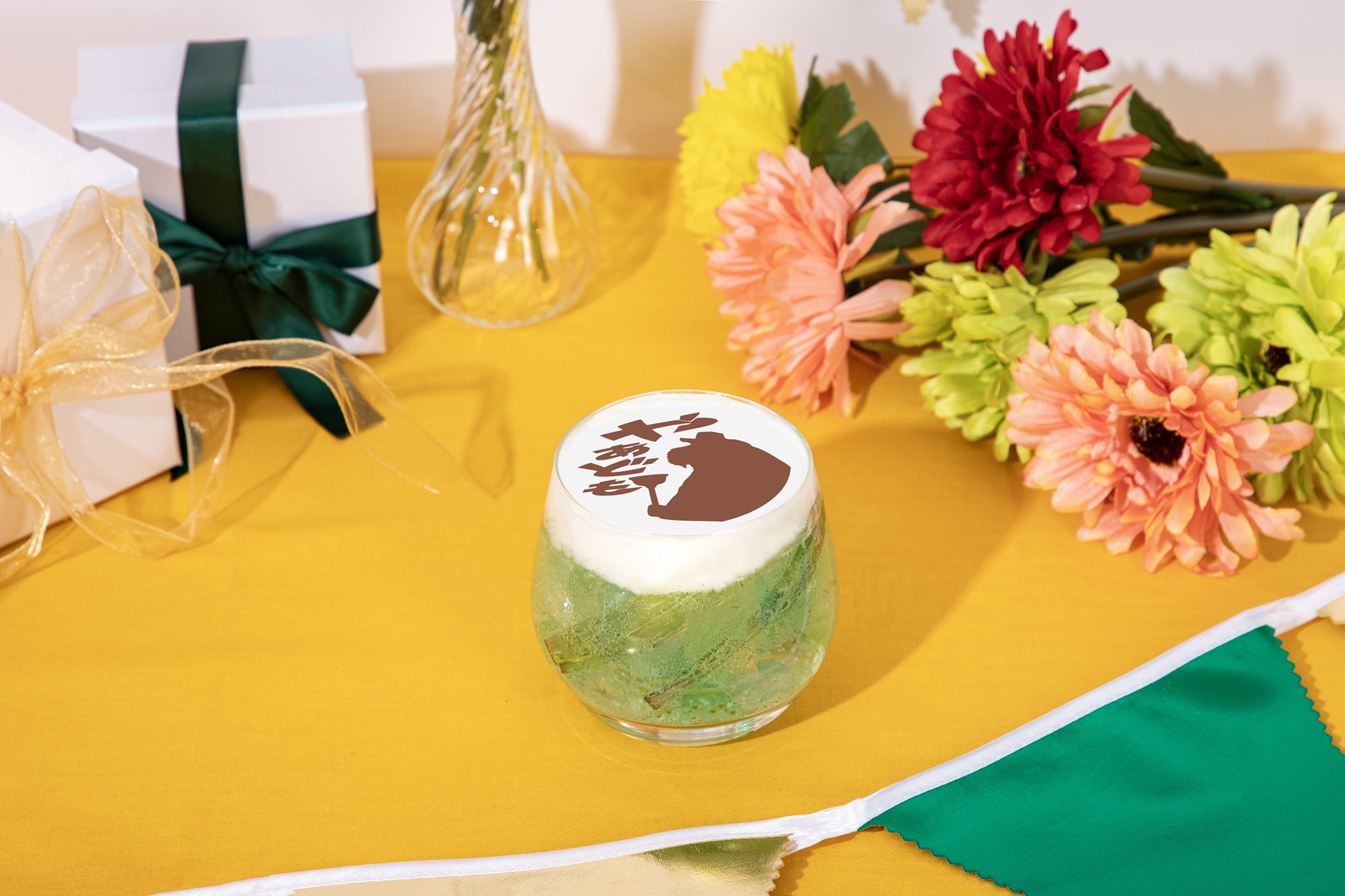 セイウチの「ラス」と「ニブルズ」のユニークなコミュニケーションのシーンをイメージしたスペシャルドリンク。 「マーシュ・マーケット」をイメージした爽やかなレモングラス入りのライムソーダに、ふわふわのエスプーマをトッピング。特典コースター付き。