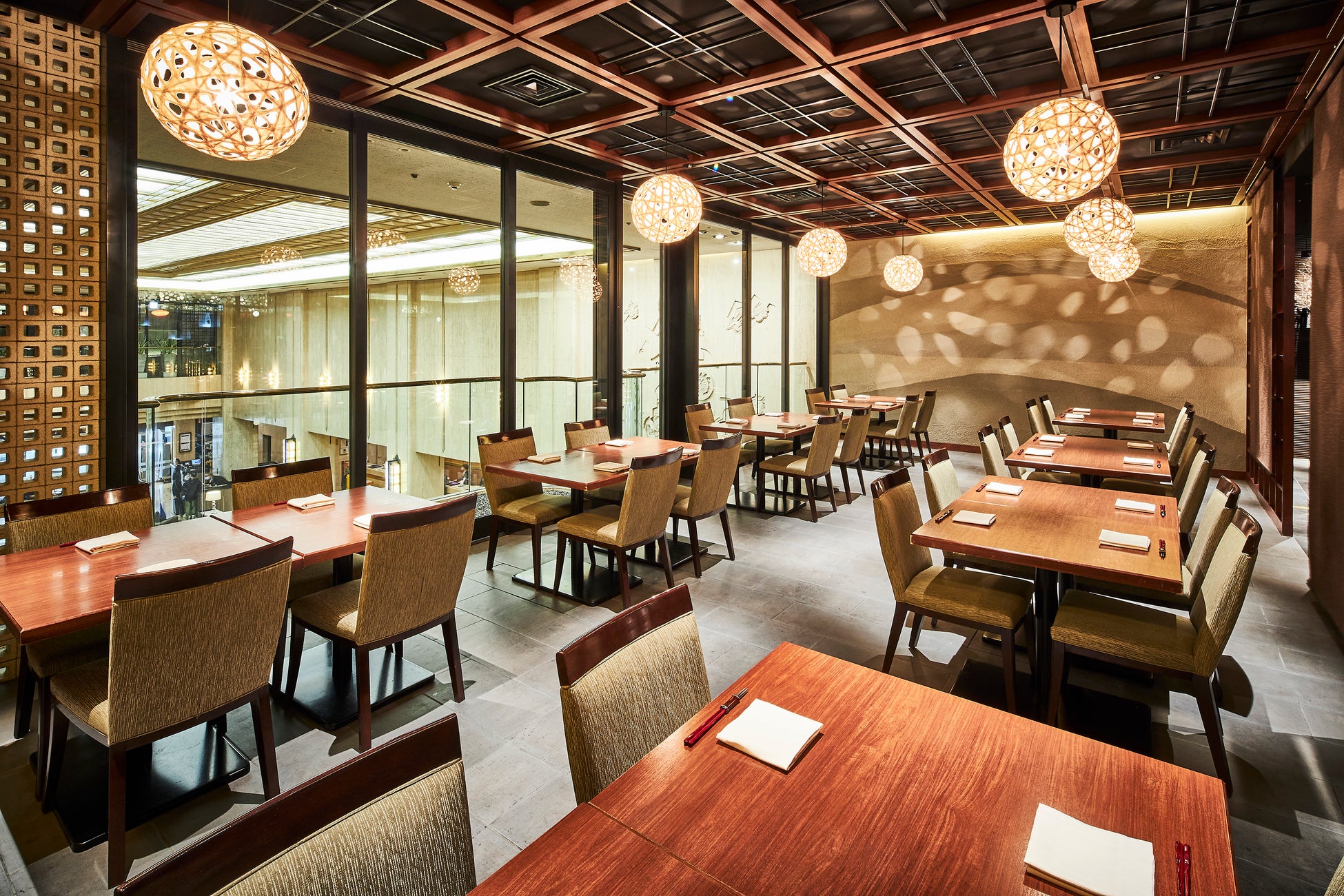 食材がもつ旨みをいかした炙り・炭火&鉄板焼き料理をご用意しています。お祝いの席や親しい方とのランチやディナーなど、シーンに合わせて最適なおもてなしができる客席は、カウンター席からゆったりとくつろげるホール席、12名様までご利用いただける個室もご用意しております。