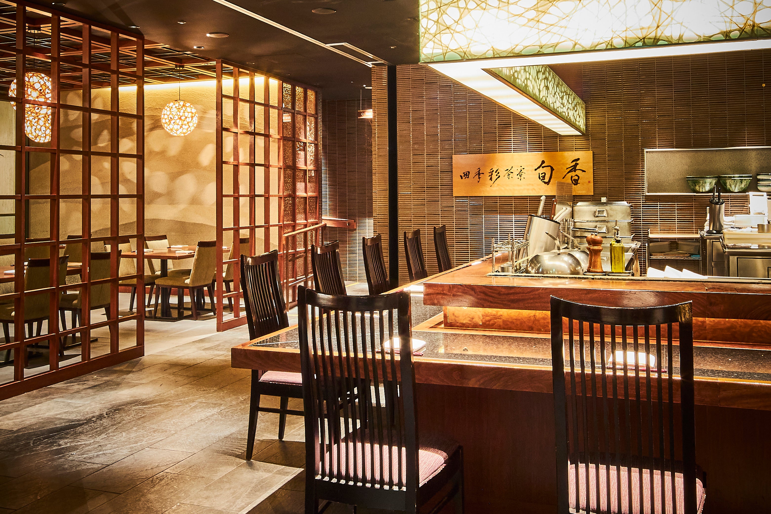 食材がもつ旨みをいかした炙り・炭火&鉄板焼き料理をご用意しています。お祝いの席や親しい方とのランチやディナーなど、シーンに合わせて最適なおもてなしができる客席は、カウンター席からゆったりとくつろげるホール席、12名様までご利用いただける個室もご用意しております。