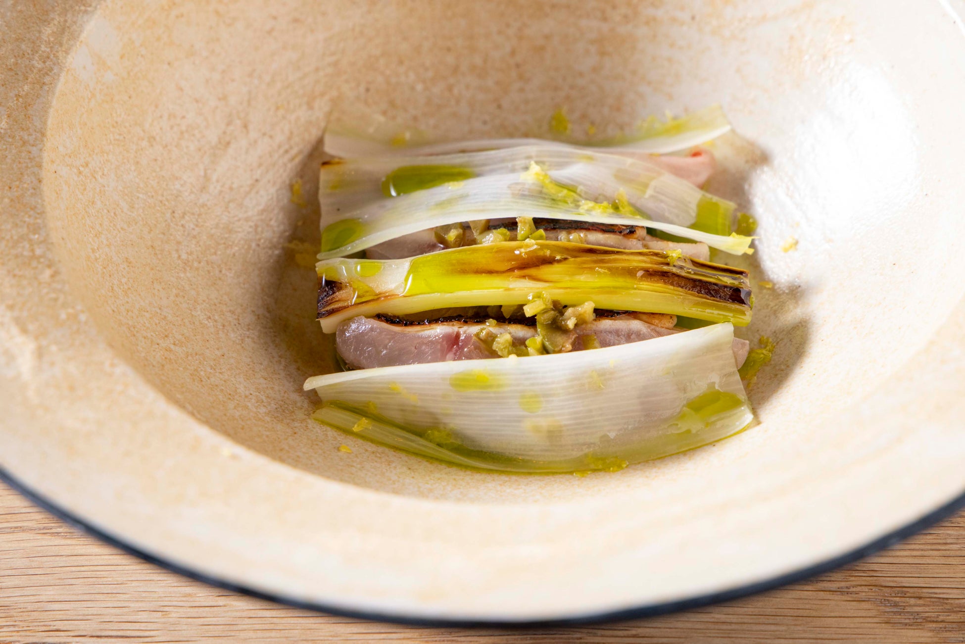 LA BONNE TABLEの中村和成シェフは「かずさ和牛の稲藁焼き、牛蒡、ティムールペッパー」と「銚子つりきんめ、サフランリゾット、蕪」で千葉の海と大地の豊穣を表現します。