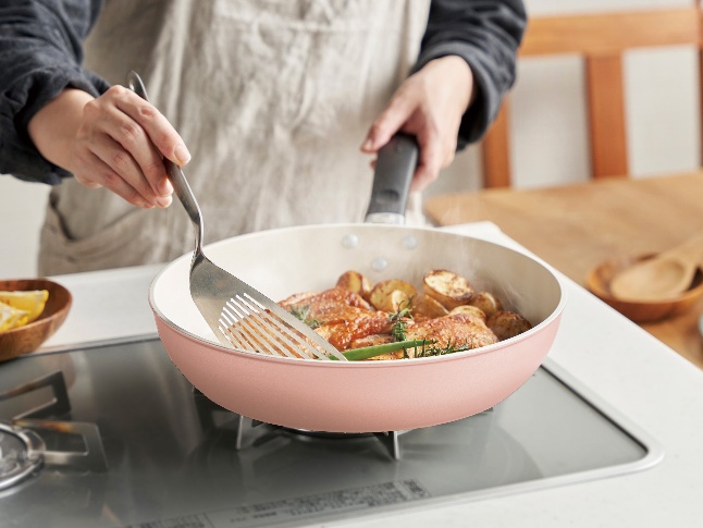 京セラのセラミックナイフは、鋭い切れ味が長く続き、手に持った時の軽さが特長です。セラブリッド フライパンは調理面に施したセラミック加工により、鉛・カドミウムなどの有害物質や有機フッ素化合物(PFAS※2)を含まない、安全性に優れた商品として、多くのお客様からご好評をいただいています。