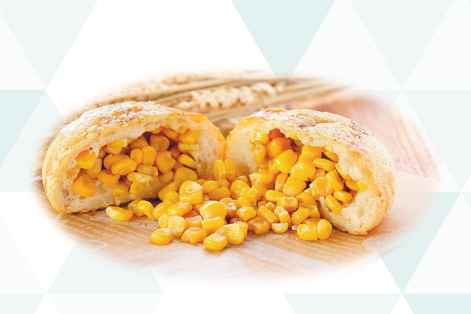 バターで味付けしたとうきびをこぼれ落ちそうな程たっぷりと包み込みました。