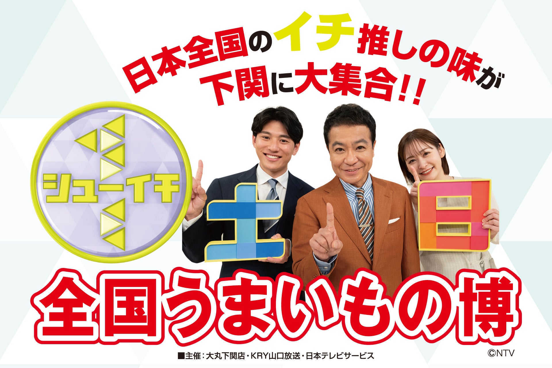 シューイチ全国うまいもの博を下関で開催いたします!人気のグルメや初登場のお店など、全42店のうまいものがお楽しみいただけます。日本全国イチ推しの味が下関に大集合!!