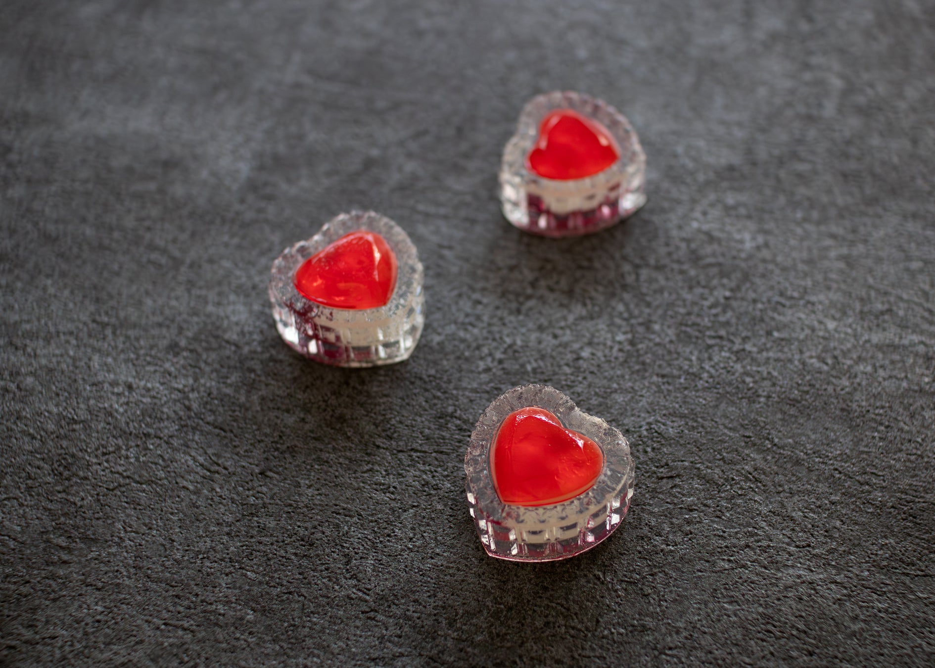一般的なサンド菓子のようにクリームを“挟む”のではなく、まるで宝石を封じるように“封じる”設計とすることで、クリームがこぼれるという従来のバターサンドがもつ弱点を解消しました。また、天面はハートシェイプのブリリアントカットにカットされ、光を透過する透明層と、光を吸い込む練り物層の重なりが複雑で繊細な輝きを生み出します。