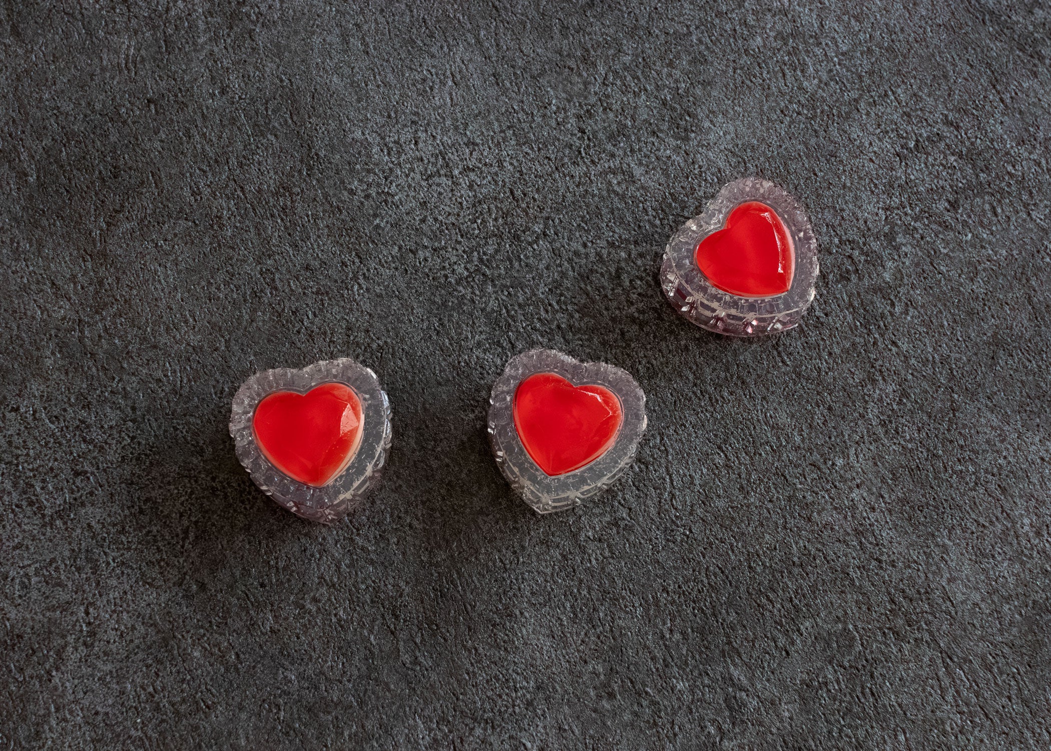 一般的なサンド菓子のようにクリームを“挟む”のではなく、まるで宝石を封じるように“封じる”設計とすることで、クリームがこぼれるという従来のバターサンドがもつ弱点を解消しました。また、天面はハートシェイプのブリリアントカットにカットされ、光を透過する透明層と、光を吸い込む練り物層の重なりが複雑で繊細な輝きを生み出します。