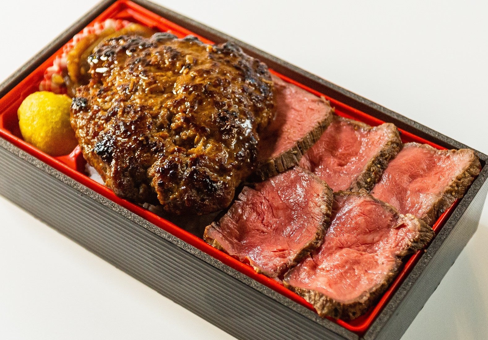 前半[熊本]白水乃蔵/あか牛入りハンバーグとステーキ重(1折)2,160円