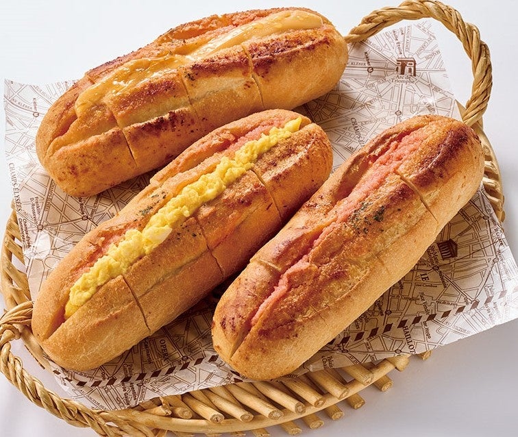前半[福岡]福太郎/めんたいフランス プレーン(1本)441円、たまごサラダ(1本)540円、めんたいマヨネーズタイプ(1本)540円