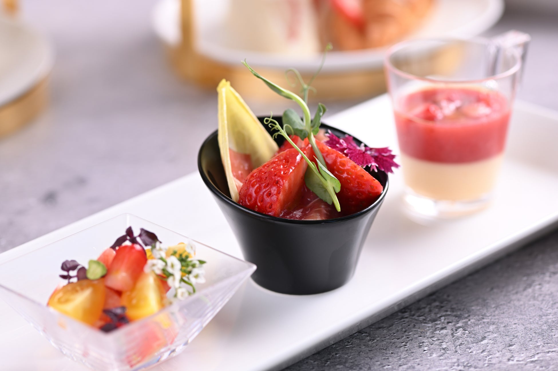 真紅に色づき、宝石のように煌めく旬な国産苺、「クイーンストロベリー」をはじめ、国内から選りすぐった苺の魅力を、多彩なお食事とスイーツで表現いたしました。特別なティータイムの始まりには、苺の瑞々しさを塩味とともに引き立てるセイボリープレート、メインのティースタンドには、クイーンストロベリーの練乳ショートケーキを主役に、ここでしか味わうことのできない、苺の甘みを存分に引き出したスイーツが華やかにテーブルを彩ります。象徴的な「Strawberry Box」は、蓋を開けた瞬間に芳醇な香りが広がり、視覚だけでなく香りでも旬を感じていただける一品です。旬の苺が奏でる華やかなアフタヌーンティーとともに、日本橋の情景を眺めながら、優雅なひとときをお過ごしください。
