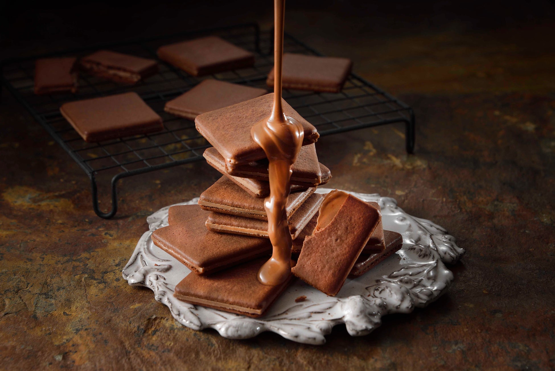 まろやかな口溶けのミルクチョコプレートをココア生地のクッキーではさんださっくりと軽やかなラングドシャです。