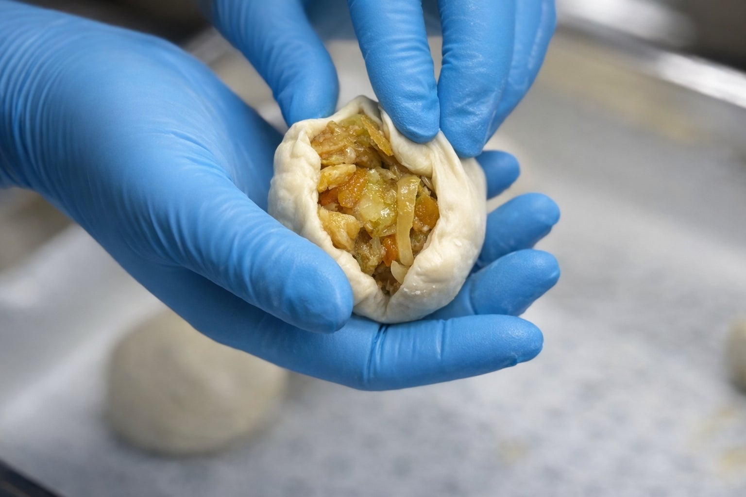 ごろっと入った野菜や旨みあふれる具材を丁寧に包み込みました。