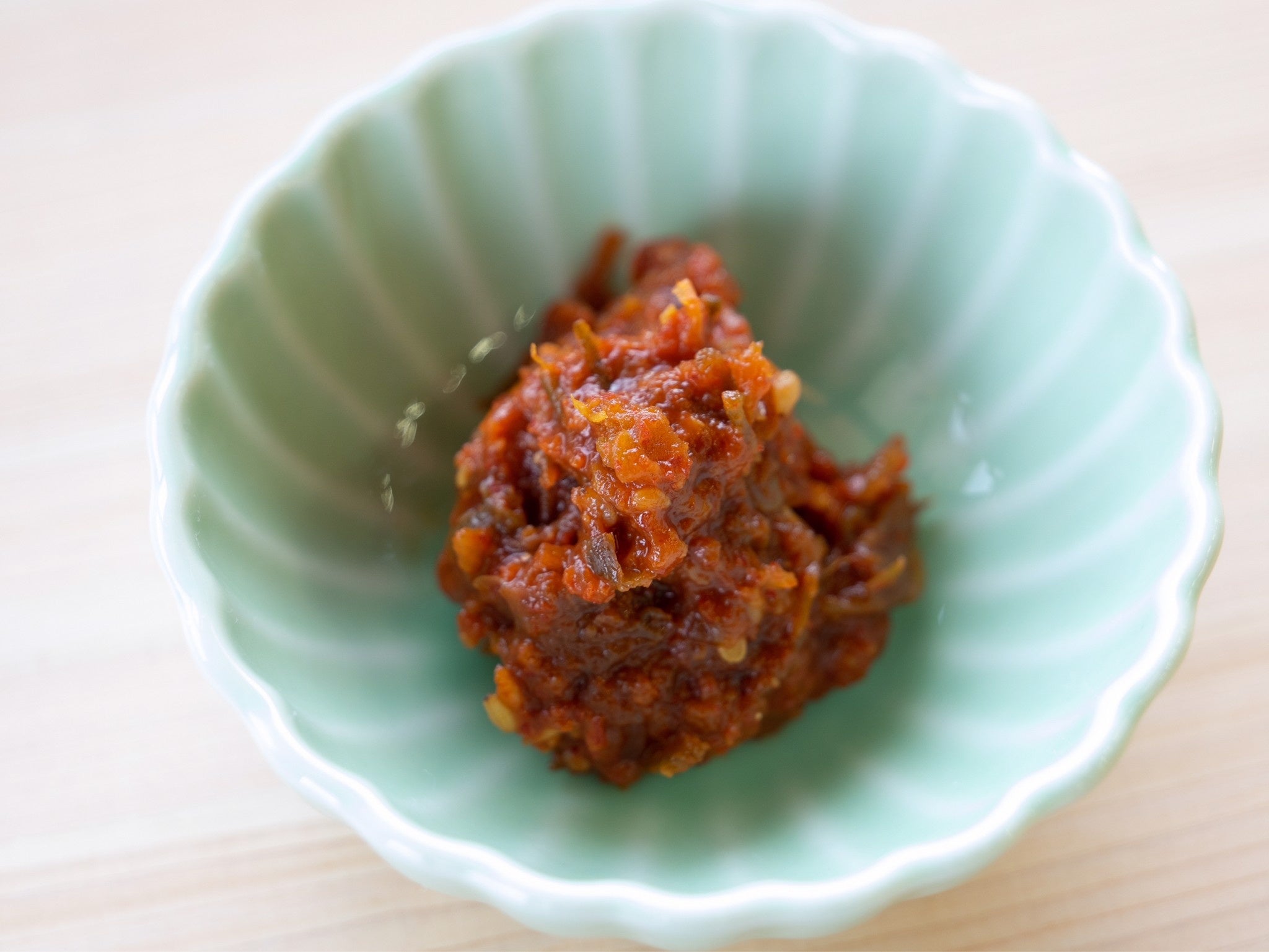食べ進めていく中で、道の駅中条オリジナル「辛みそ」をお好みで加えることで、辛さとコクがさらに引き立ち、味の変化をお楽しみいただけます。