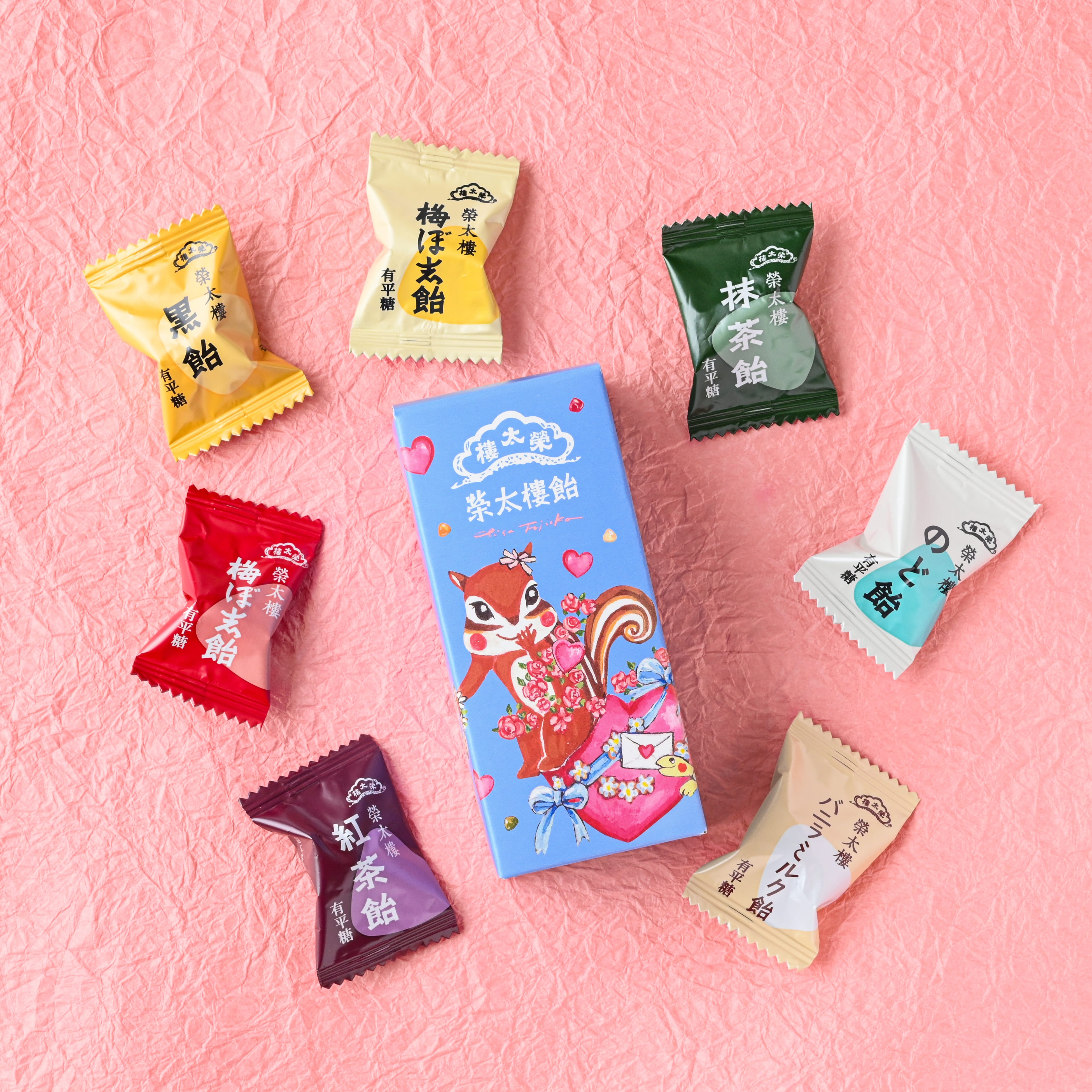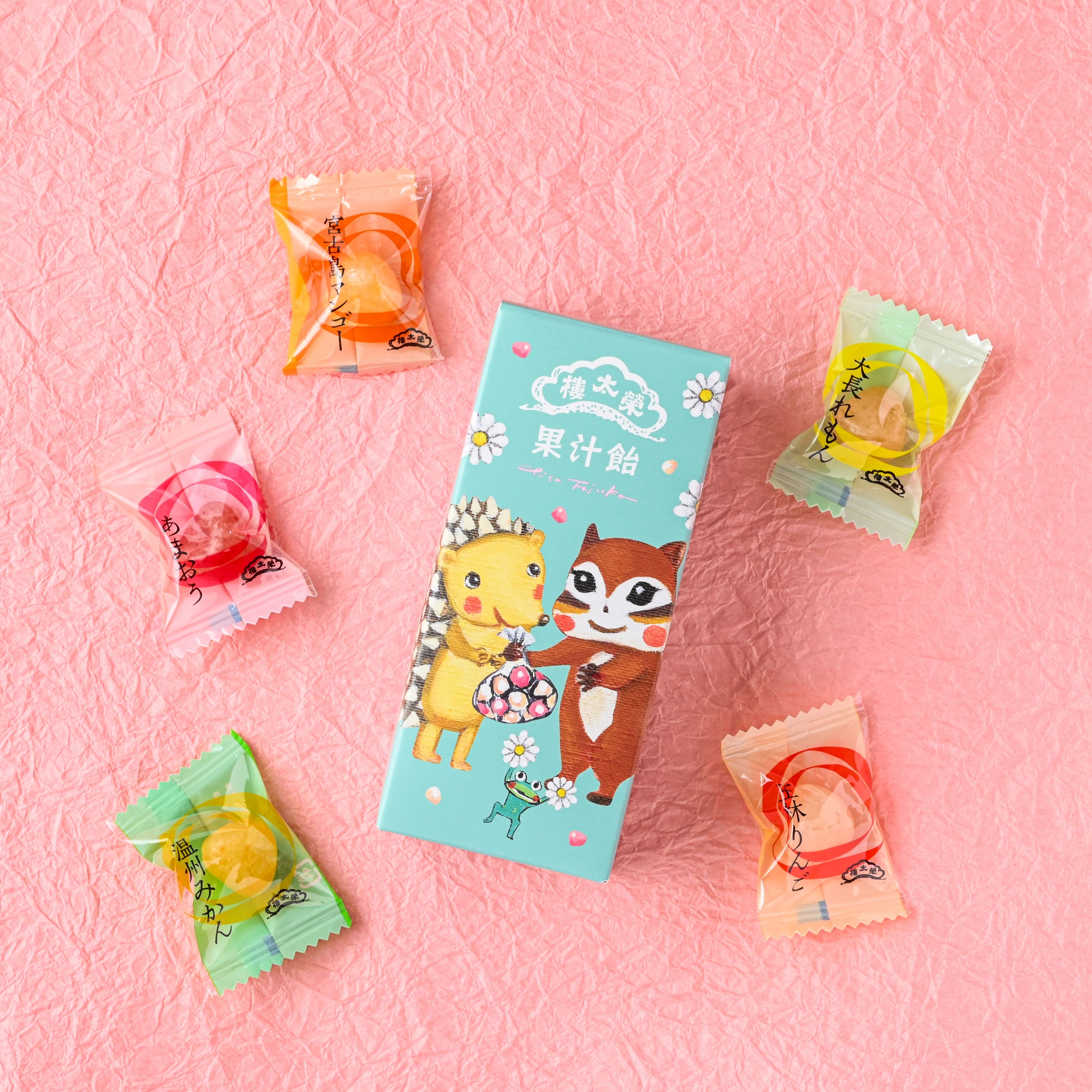 榮太樓總本鋪の代表商品である「榮太樓飴」と国産果物を使用した、無香料・無着色の「果汁飴」がイラストレーターの藤岡ちささんとコラボレーションしました。