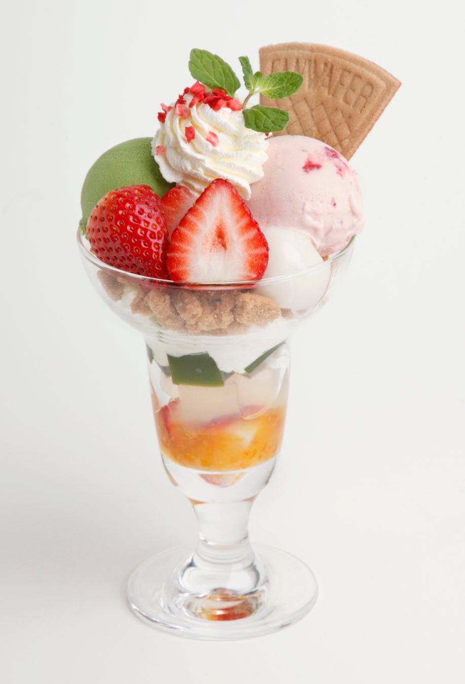 とちあいかを花びらのように飾り付けた華やかなサンデー。甘みとみずみずしさが際立つ、季節限定の楽しくて贅沢な味わいです。