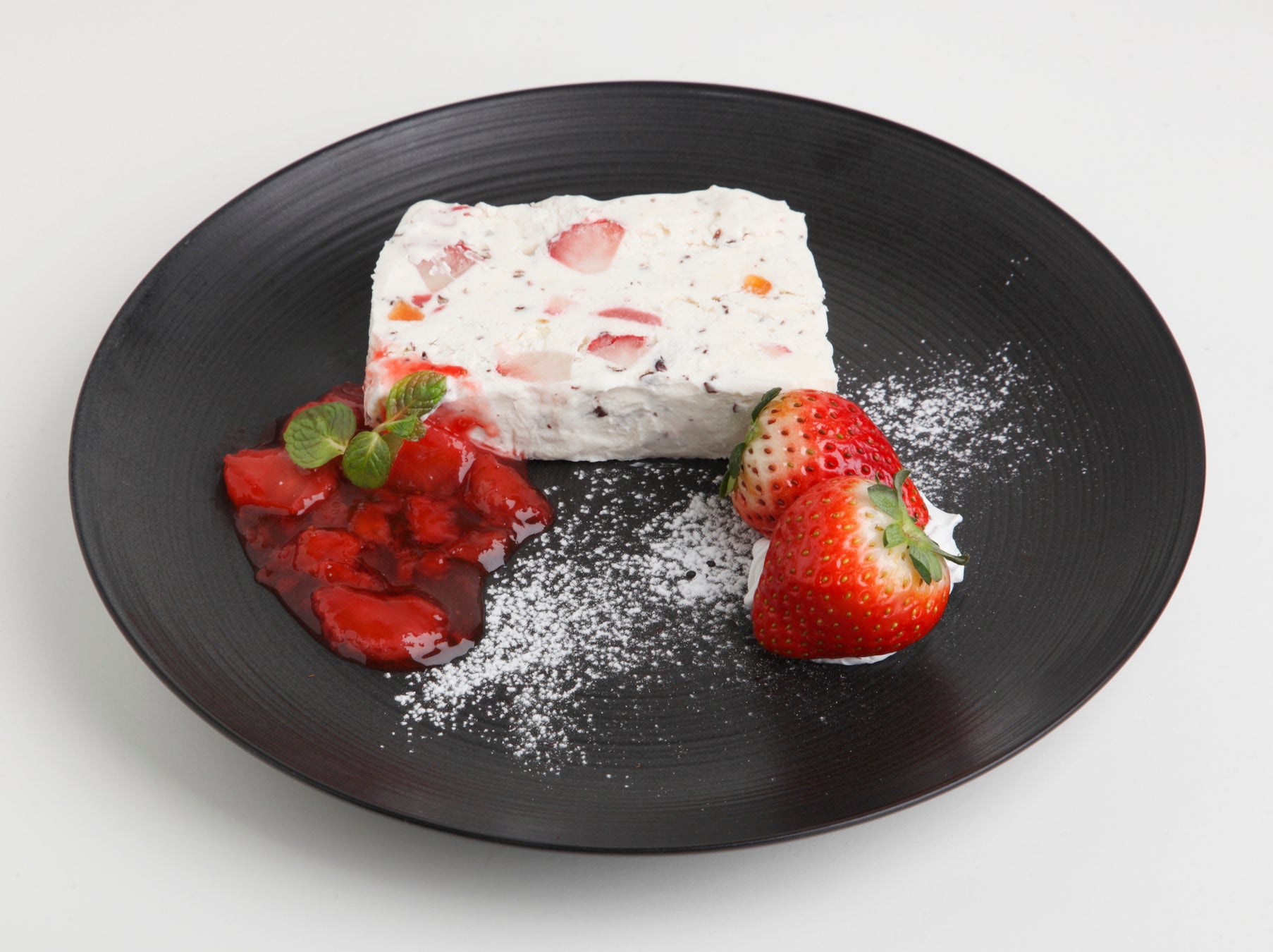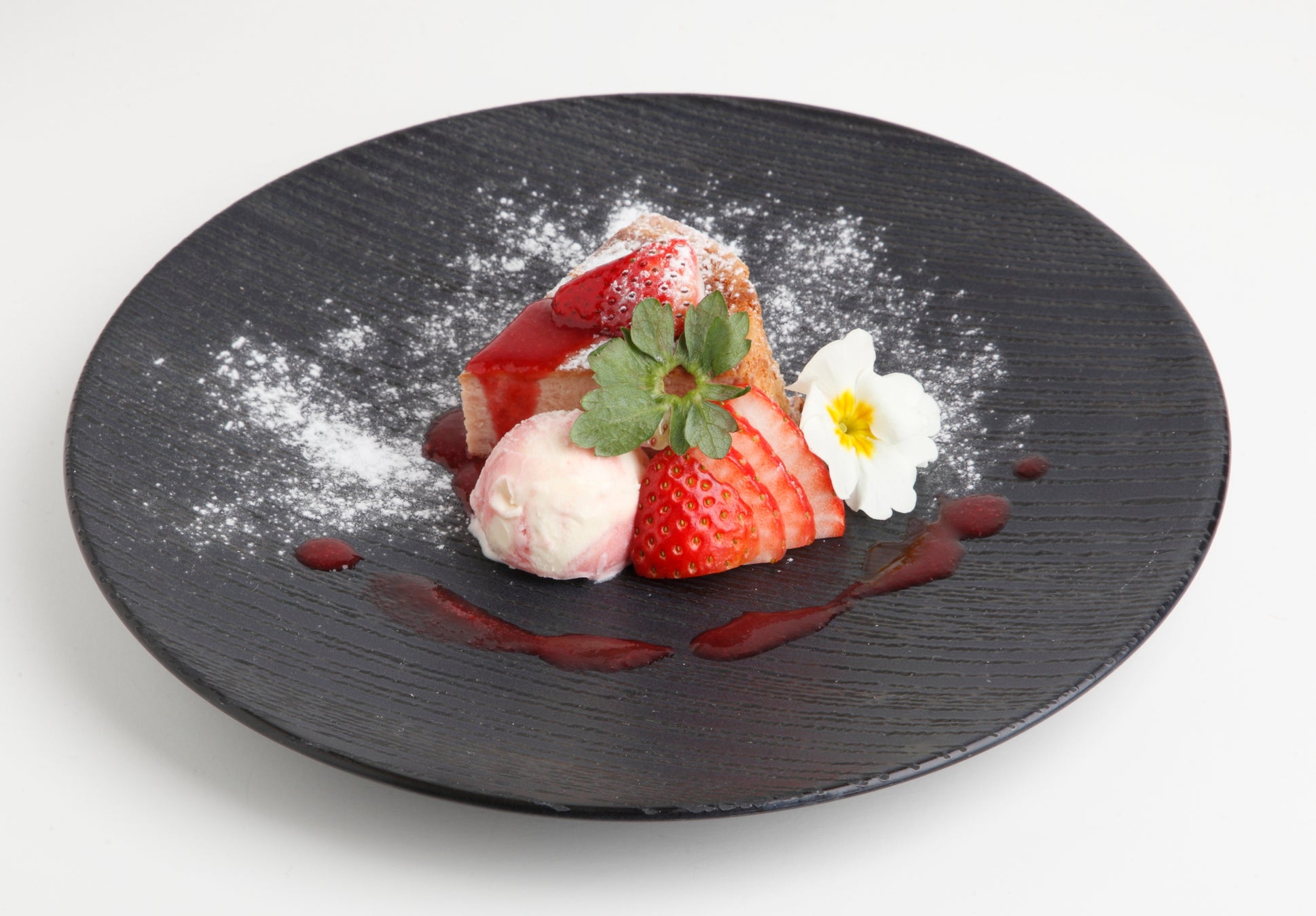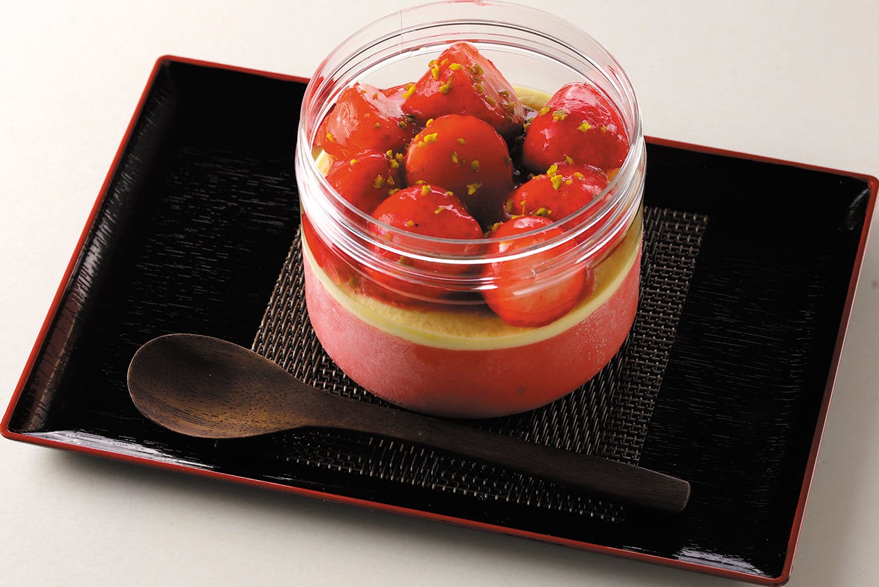 バニラ風味のババロアに、甘酸っぱいとちあいかのイチゴソースをかけ、果実をトッピング。 とちあいかの香りが引き立つ仕上がりです。