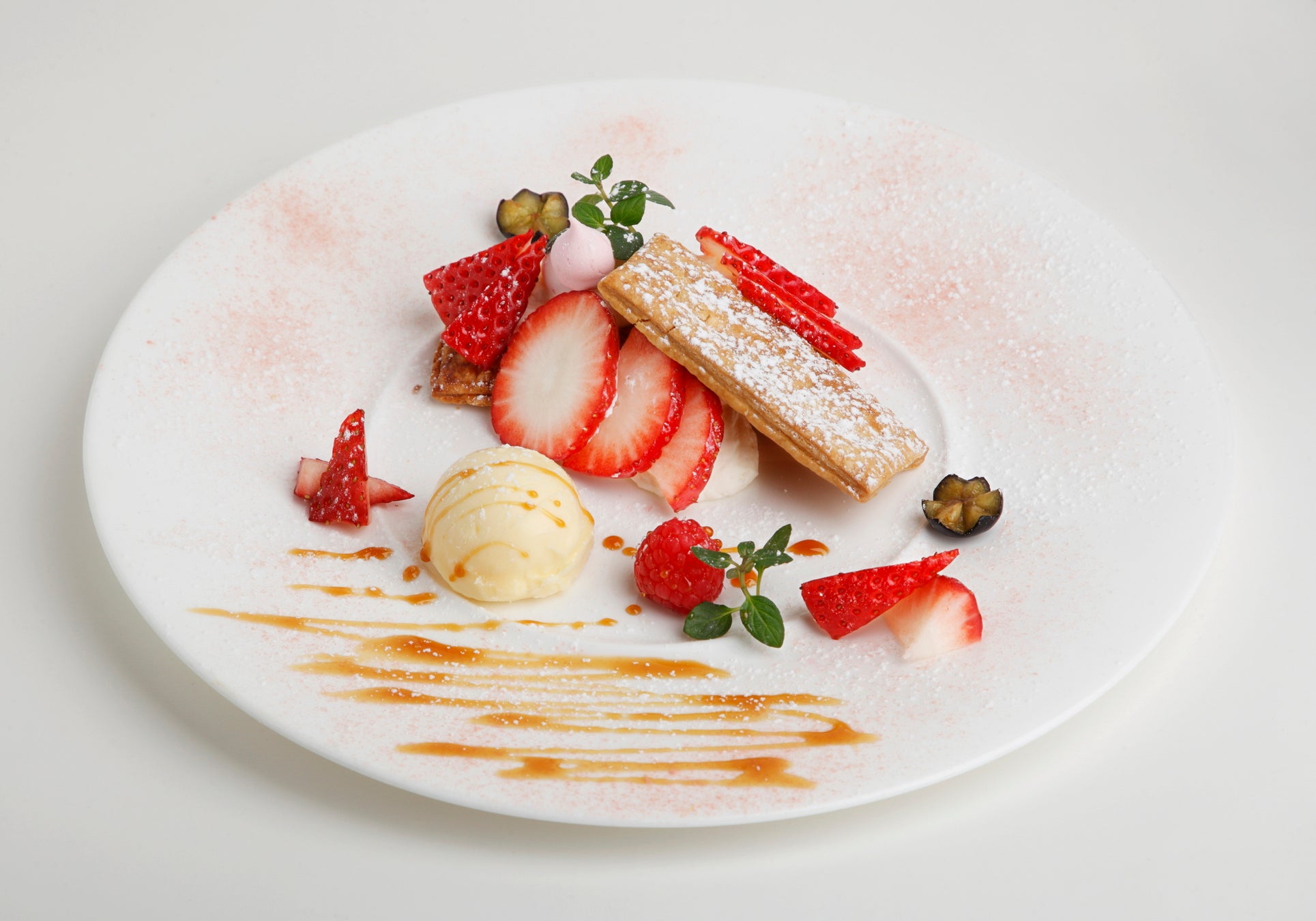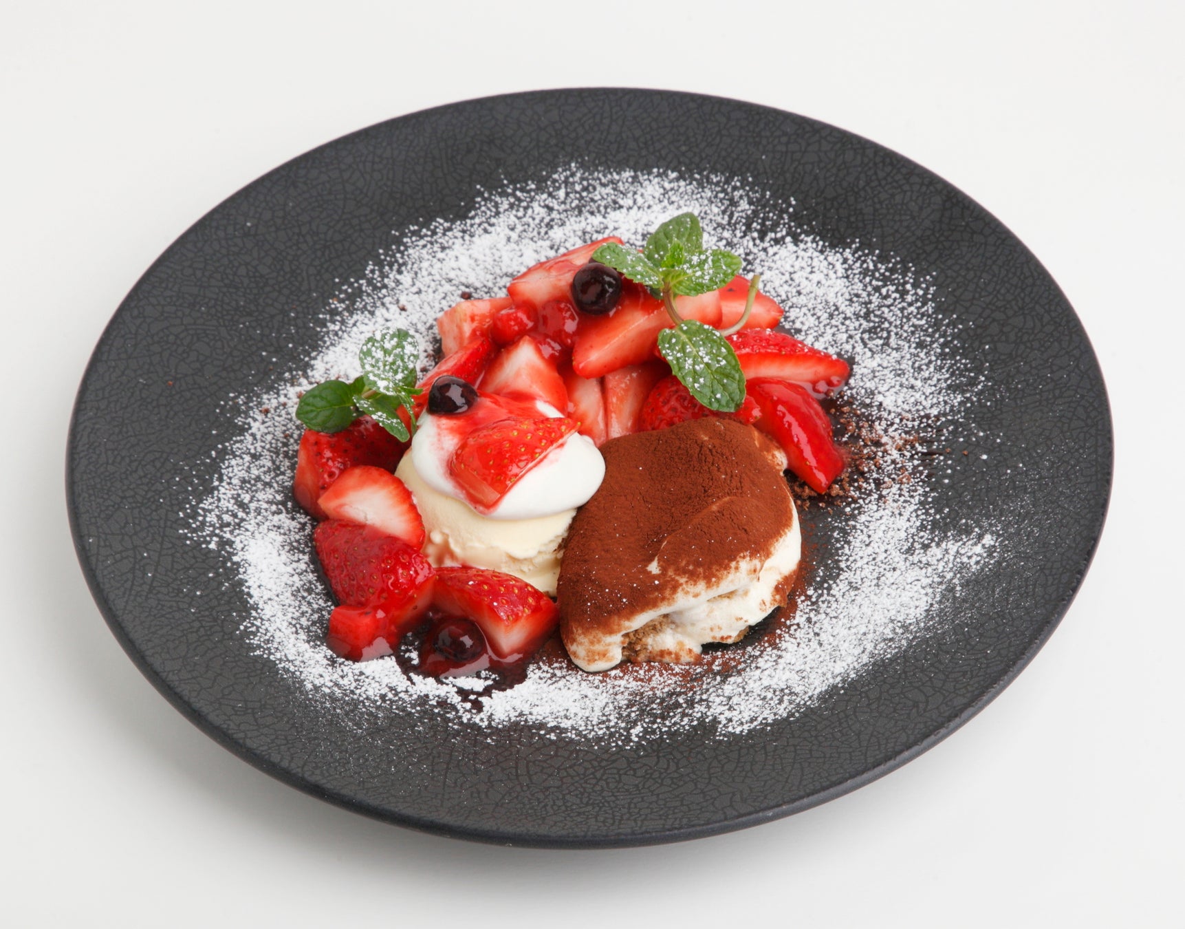 たっぷりのせたとちあいかの甘酸っぱさと、自家製ティラミスの濃厚さを一皿に盛り付けました。 本日のアイスも加わって、最後まで飽きない味の三重奏です。
