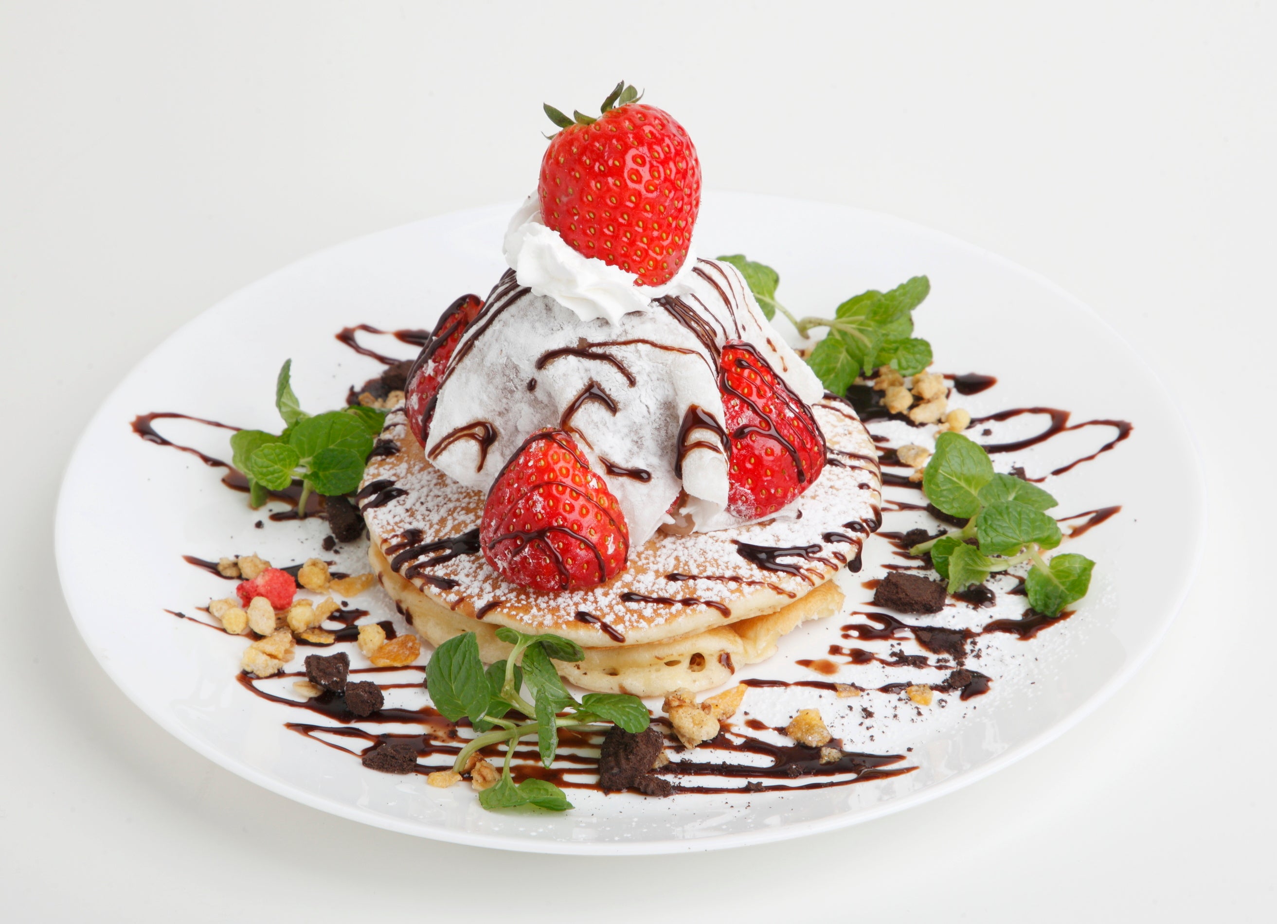 もっちりした米粉のパンケーキにティラミスソースを合わせました。とちあいかの甘さとともに存分にお楽しみください。