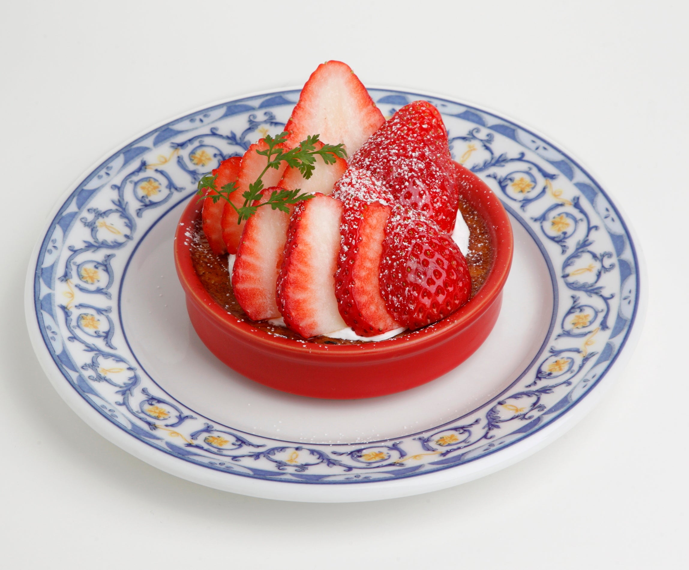 表面をパリパリにカラメリゼしたスペイン定番のデザート「クレマ・カタラーナ」に、とちあいかをふんだんにトッピングした毎年大人気のメニュー。いちごの甘酸っぱさが「クレマ・カタラーナ」の甘さを引き立たせた逸品です。