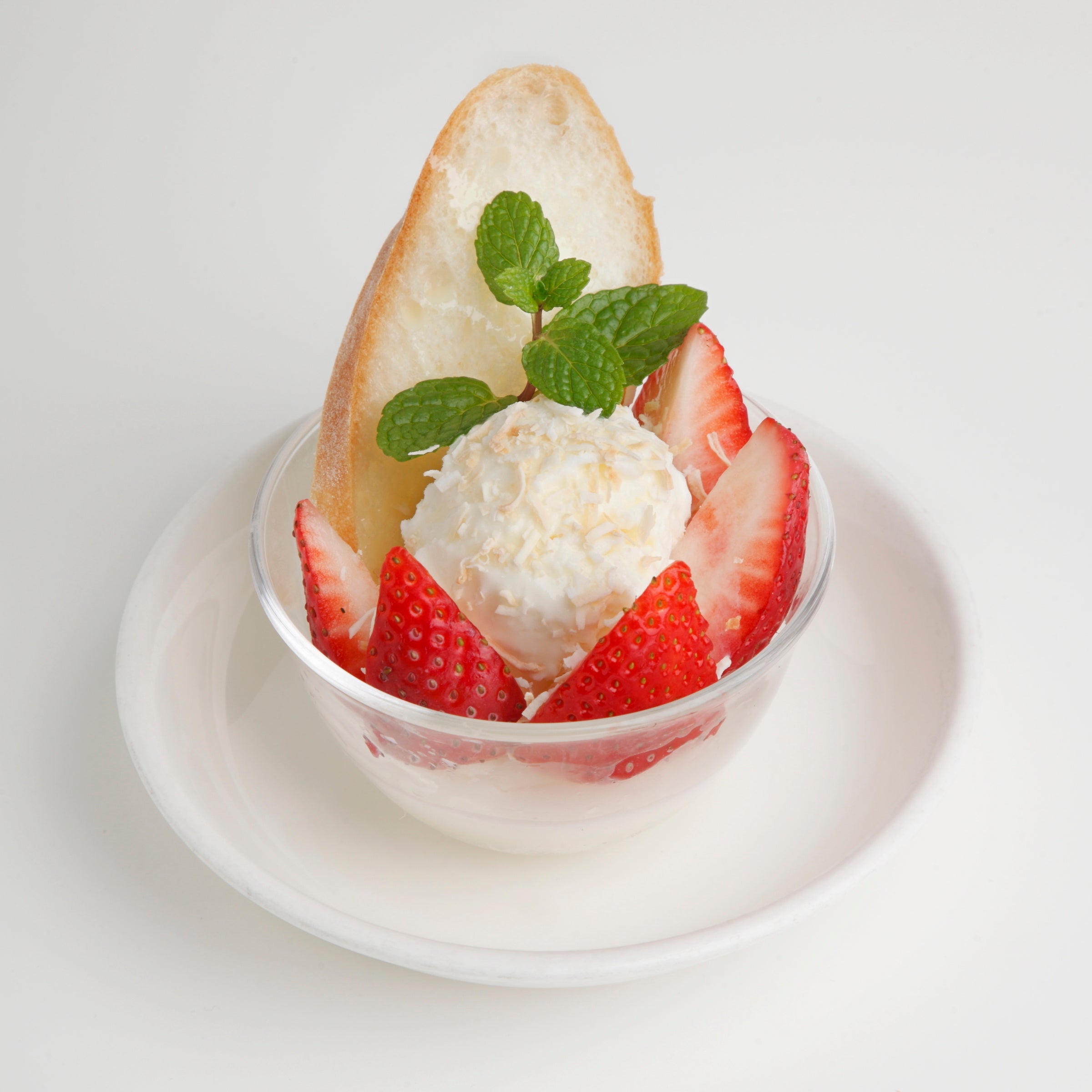 酸味が少なく甘さが際立ついちご、とちあいかと、ドナテロウズで人気のジェラートを合わせました。 ホイップクリームやチョコレートソースとの相性も抜群!!季節のフルーツ、とちあいかをお楽しみいただける最高の組み合わせです。