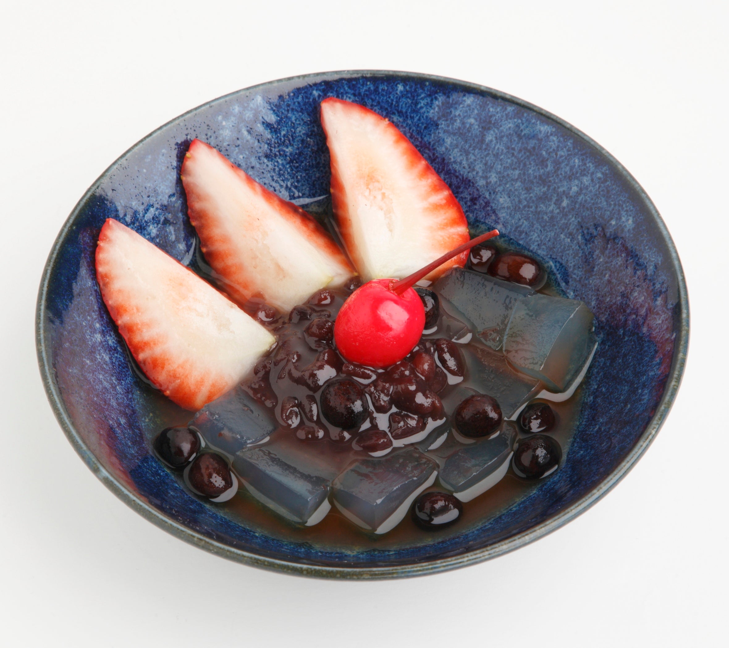 とちあいかの際立つ甘みを生かしたいちごあんみつです。酸味が穏やかで果汁が多いとちあいかと、粒あん、寒天、みつまめとの調和をお楽しみください。口に残る優しい甘みがあんみつ全体の完成度を引き上げます。