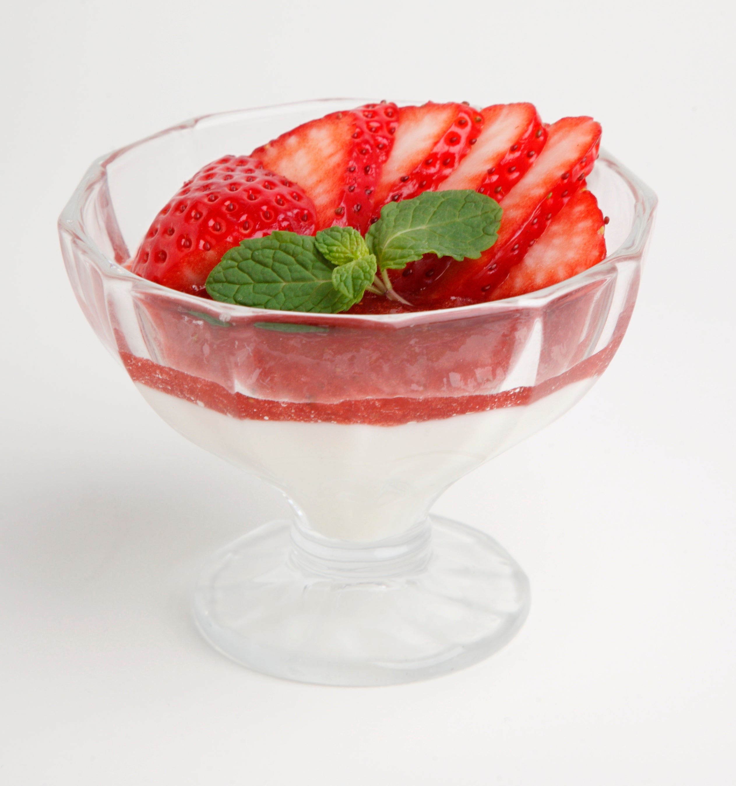 とちあいかと北海道の牛乳とホイップクリームを掛け合わせたブランマンジェに、とちあいかのジャムを敷き詰めました。甘みには三温糖を使用し、くず粉でとろみをつけた和風ブランマンジェです。