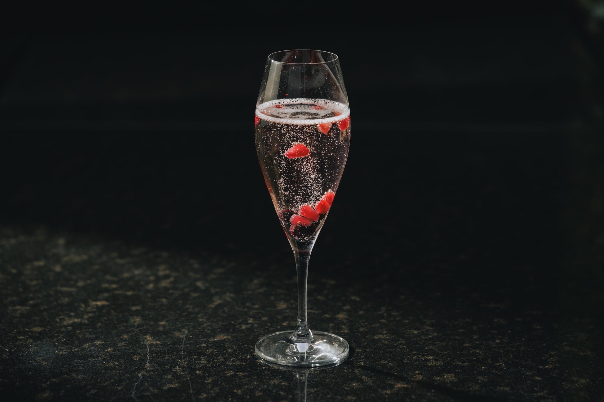いちごのフレッシュジュースに、ベルガモットの爽やかな香りを重ねたシャンパンカクテル。可憐さと華やかさを併せ持つ、春らしい味わい。