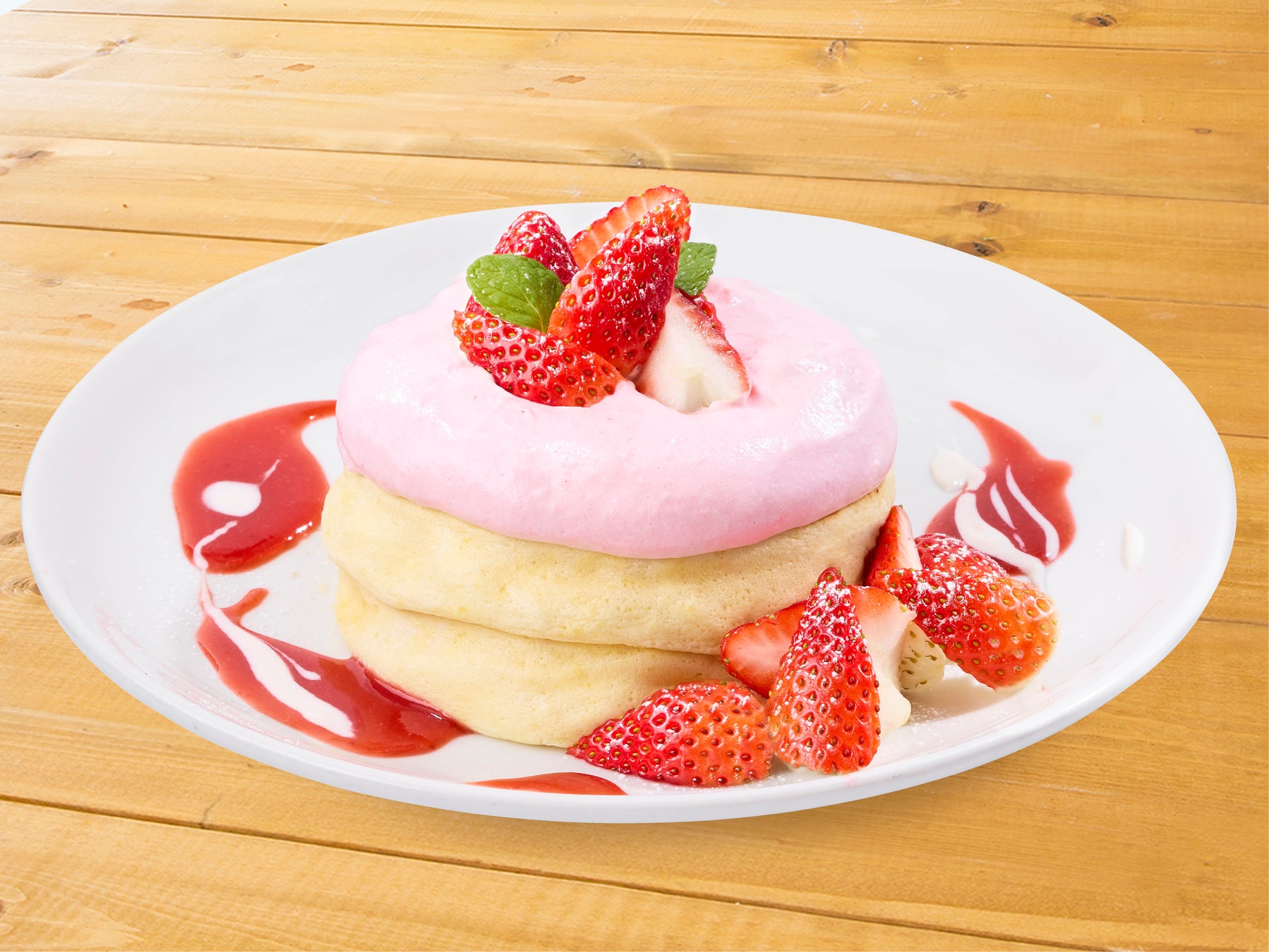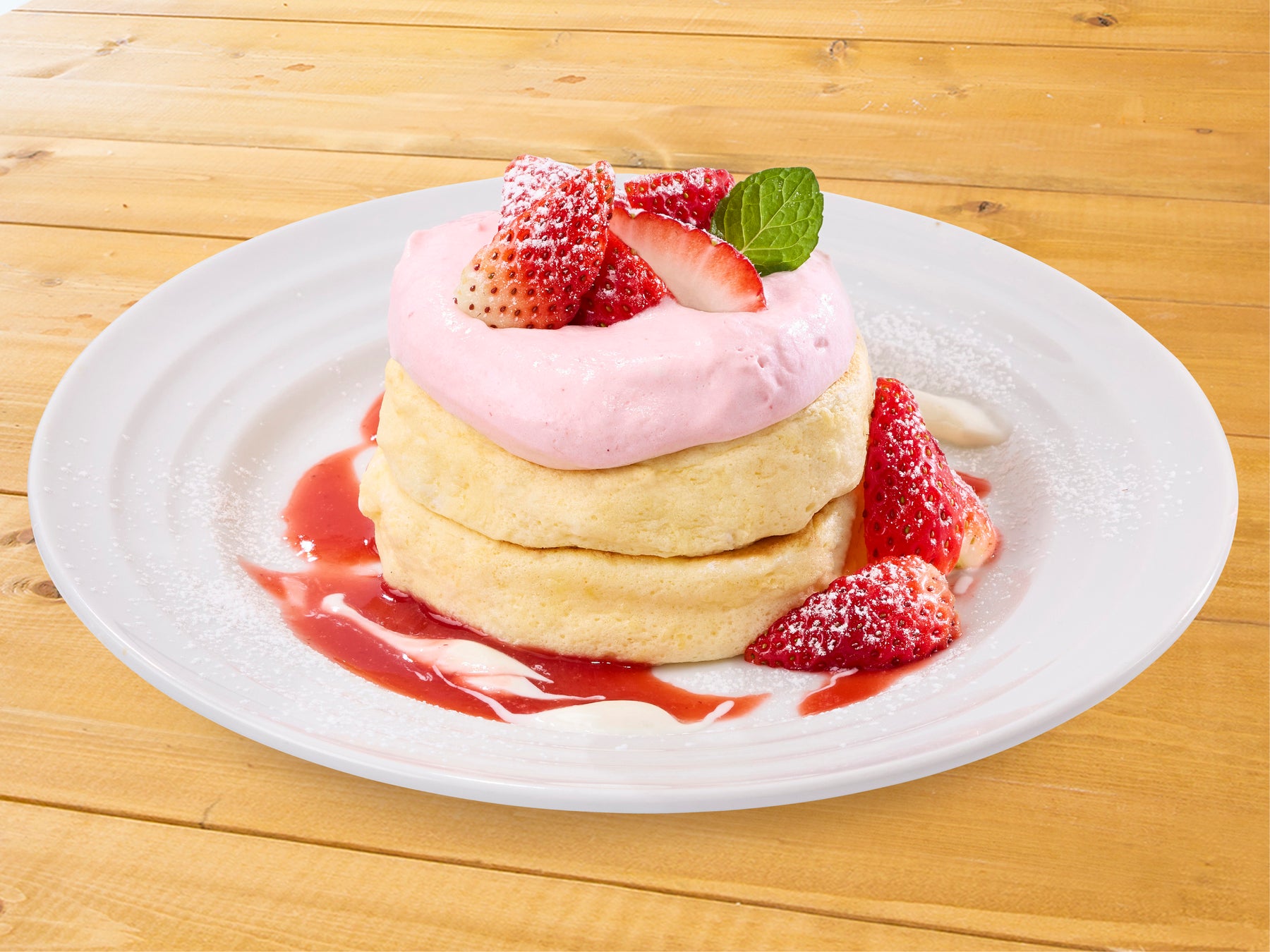 今年の苺は、その時期に最もおいしい旬の品種を選んでお届けします。産地は宮城県、山形県産を中心に使用。フェアメニューには、甘酸っぱいフレッシュないちごとコクのあるいちごクリームをのせた「リコッタパンケーキ」をはじめ、すっかり定番となった「いちごのパイ」と「いちごスムージー」も登場し、「ストロベリーフェア」を彩ります。