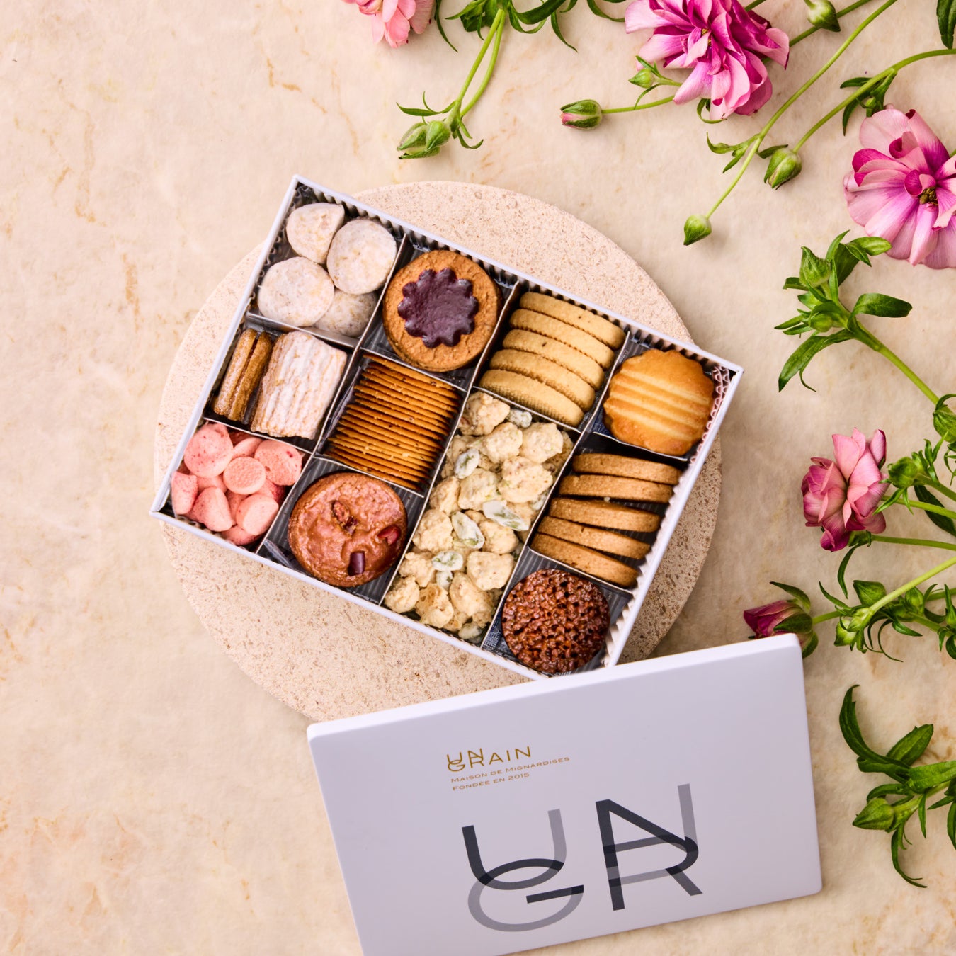 UN GRAINの焼菓子全20種をすべて堪能できる、夢のギフトボックス。全種類の詰め合わせはもちろん、お好きな焼菓子を20個自由にセレクトいただくこともできます。職場などの“大人数向けギフト”に、選べる楽しさも一緒に届けてみませんか。箱を開けた瞬間の、心弾むひとときをお楽しみください。