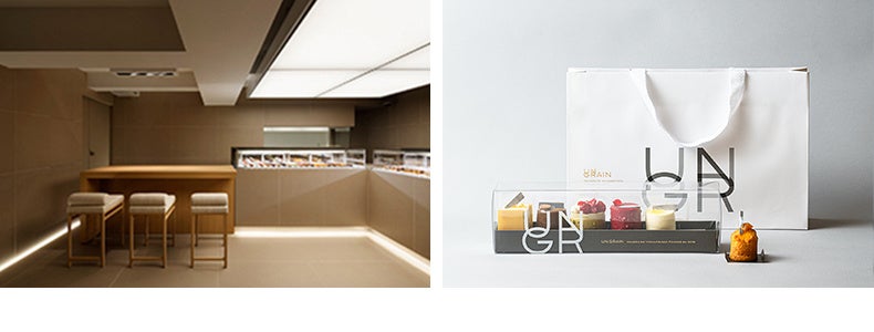 一粒の種から大切に育てられた食材を使い、作り手の想いとともに丁寧に仕上げられた一粒のお菓子は、やがてお客さまの中で新たな気持ちの種へと生まれ変わります。それぞれのお客さまに楽しく幸せなひと時を提案させていただきながら、ゆっくりと大切に「UN GRAIN」という一粒の種を育てていきたいという願いを込めて名付けました。キッチン併設型のパティスリーで、イートインスペースでは季節に合わせたイベントなども行っています。