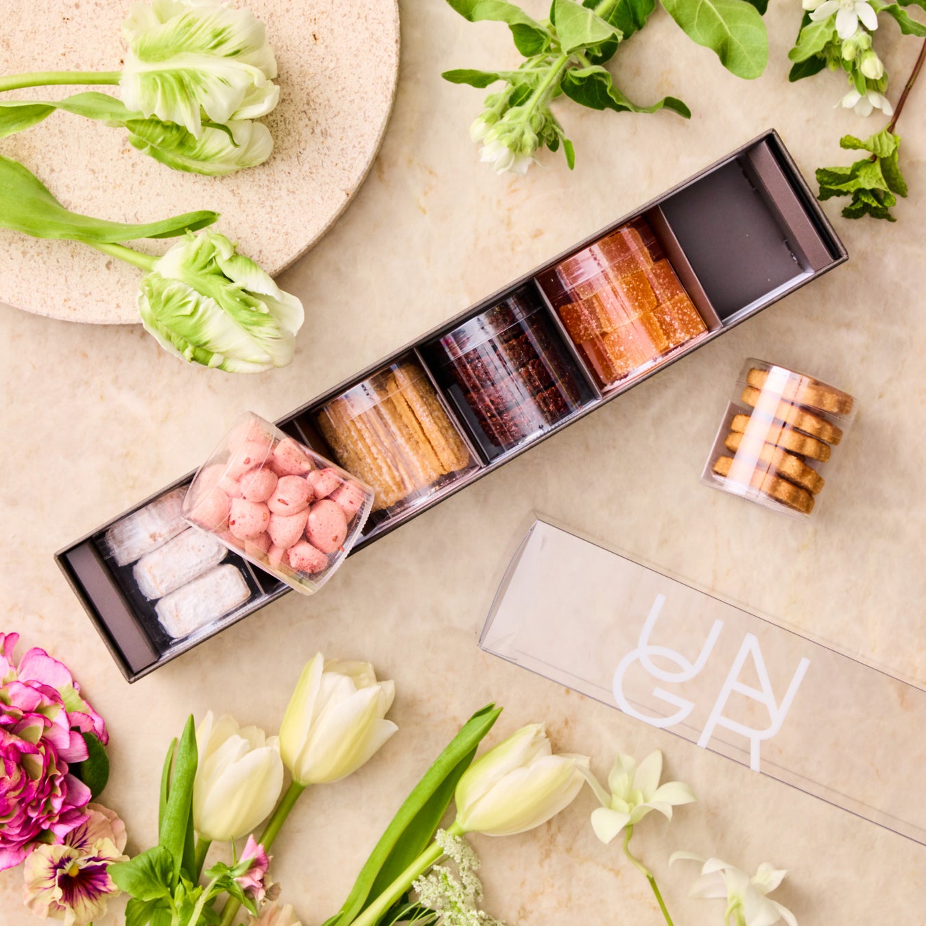 株式会社ヨックモック(代表取締役社長:藤縄武士、本社:東京都千代田区)が運営するミニャルディーズ(ひとつまみサイズのお菓子)専門店「UN GRAIN(アン グラン)」から、ホワイトデーや春のギフトシーズンにおすすめの春限定ラインナップを、2026年2月16日(月)より展開いたします。定番の人気商品から季節限定品まで全20種あるUN GRAINの焼菓子の中から、贈る相手やシーンに寄り添いながらお選びいただける、さまざまなギフトボックスをご用意しました。 “選ぶ楽しさ”を感じていただき、贈る方にも受け取る方にも心に残る贈り物とともに、大切な人とのかけがえのないひとときをお過ごしください。