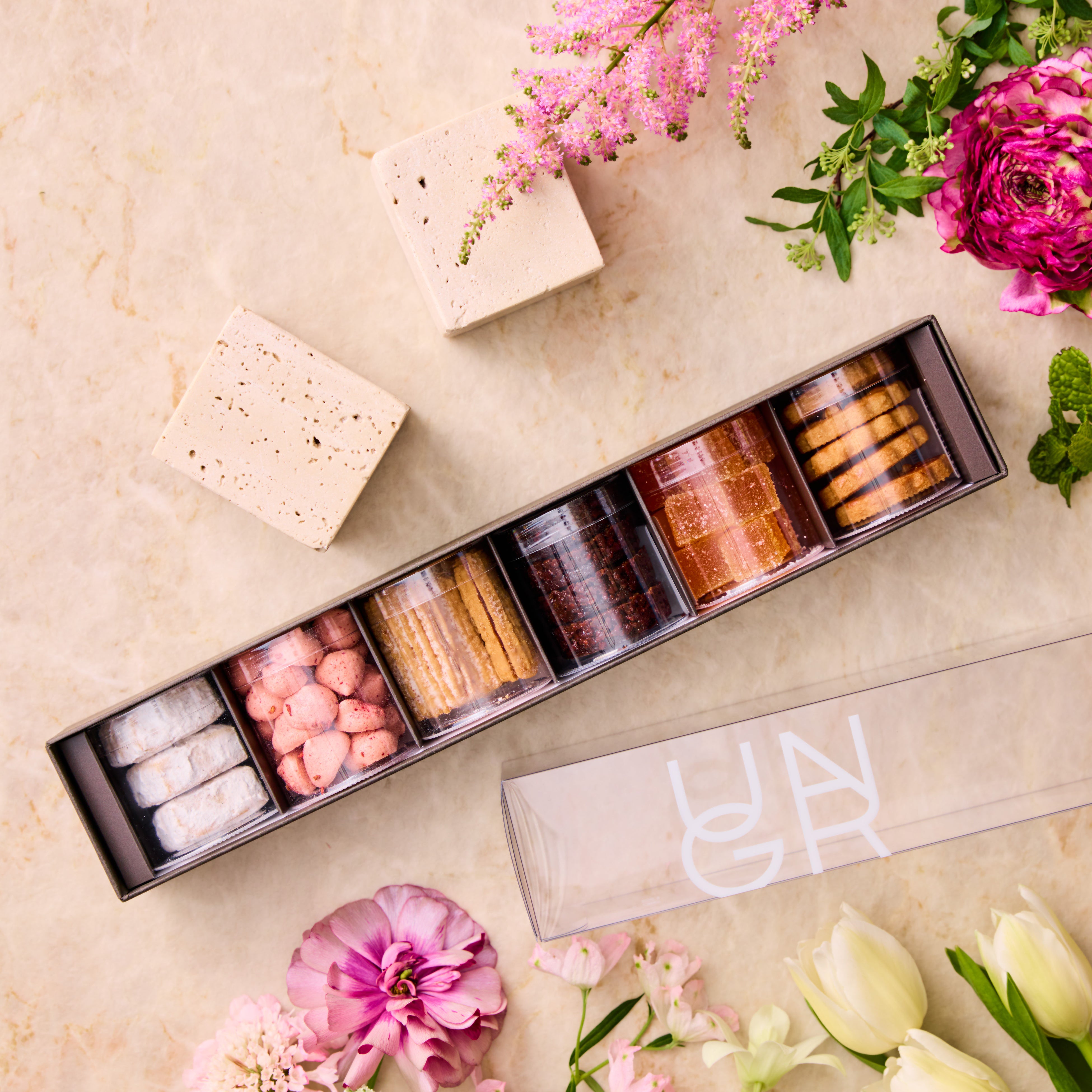 株式会社ヨックモック(代表取締役社長:藤縄武士、本社:東京都千代田区)が運営するミニャルディーズ(ひとつまみサイズのお菓子)専門店「UN GRAIN(アン グラン)」から、ホワイトデーや春のギフトシーズンにおすすめの春限定ラインナップを、2026年2月16日(月)より展開いたします。定番の人気商品から季節限定品まで全20種あるUN GRAINの焼菓子の中から、贈る相手やシーンに寄り添いながらお選びいただける、さまざまなギフトボックスをご用意しました。 “選ぶ楽しさ”を感じていただき、贈る方にも受け取る方にも心に残る贈り物とともに、大切な人とのかけがえのないひとときをお過ごしください。