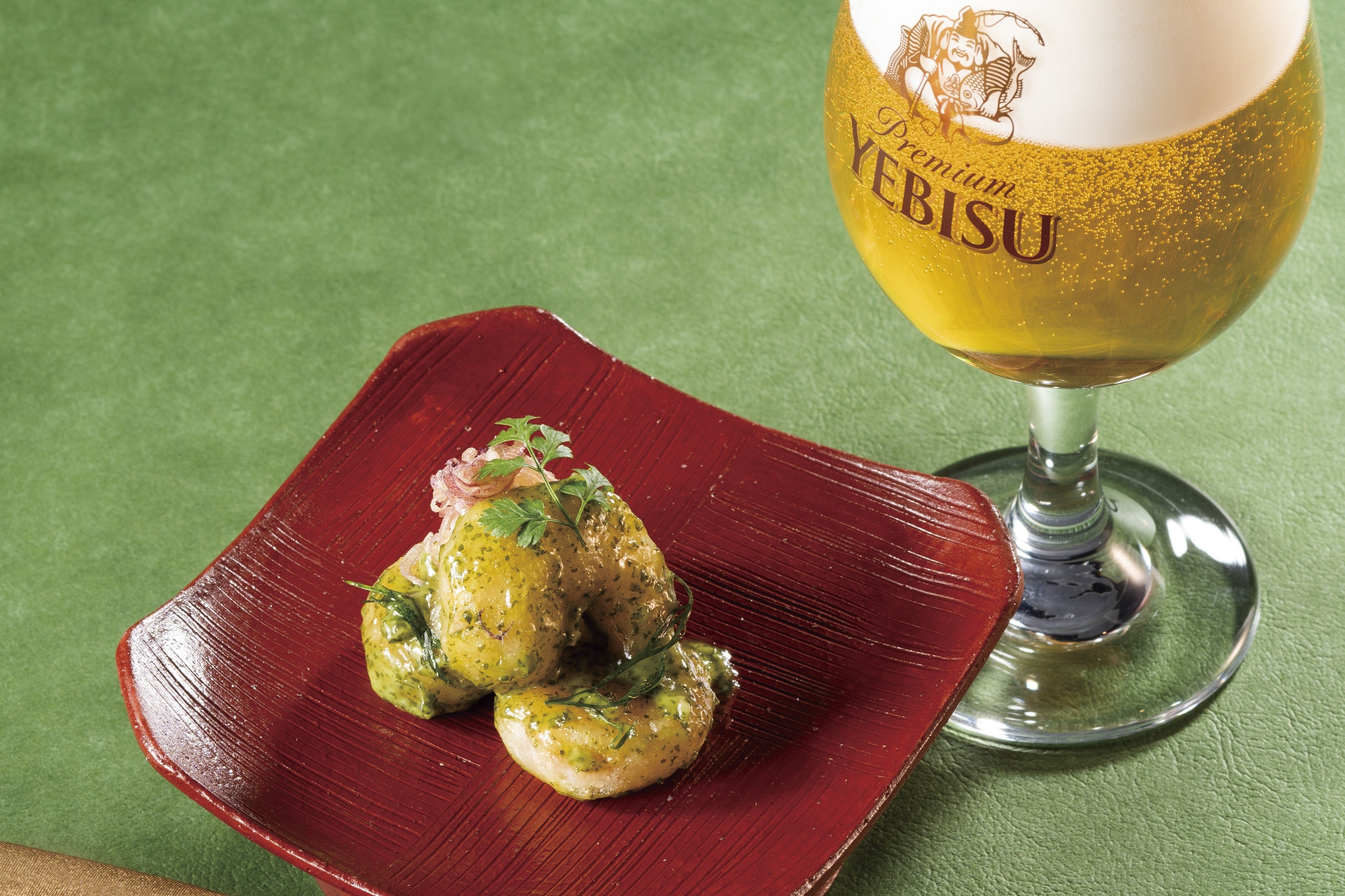 YEBISU BARでは「澄深し」の魅力を更に引き立たせるマリアージュメニュー「香草のエビマヨ」を限定販売します。