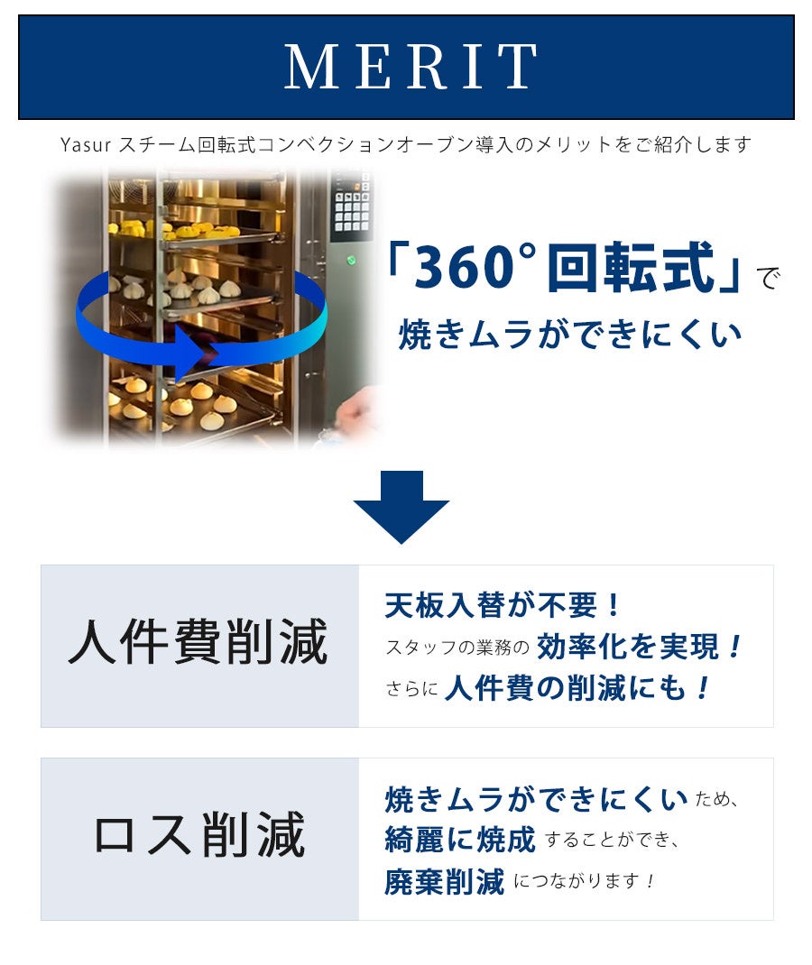 Yasur(ヤス―ル)オーブンはパンや焼き菓子の焼きムラを軽減、外は香ばしく内側はふっくらとした理想の焼き上がり。ワンランク上の上質な焼成を実現。~飲食店・ベーカリーの“焼き”課題を一気に解決します~