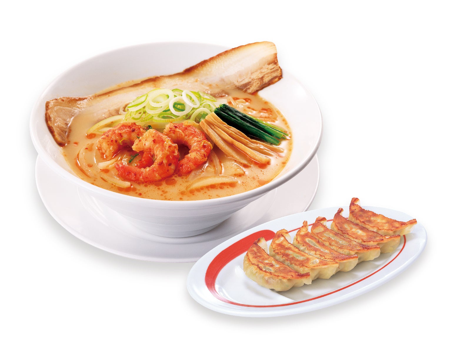トッピングのエビはプリッとした食感にこだわり、ニンニクと唐辛子のアクセントがスープの深みをさらに引き立てる満足度抜群の一杯です。また、70円~150円(税込)お得にお楽しみいただけるセットメニューもご用意しております。