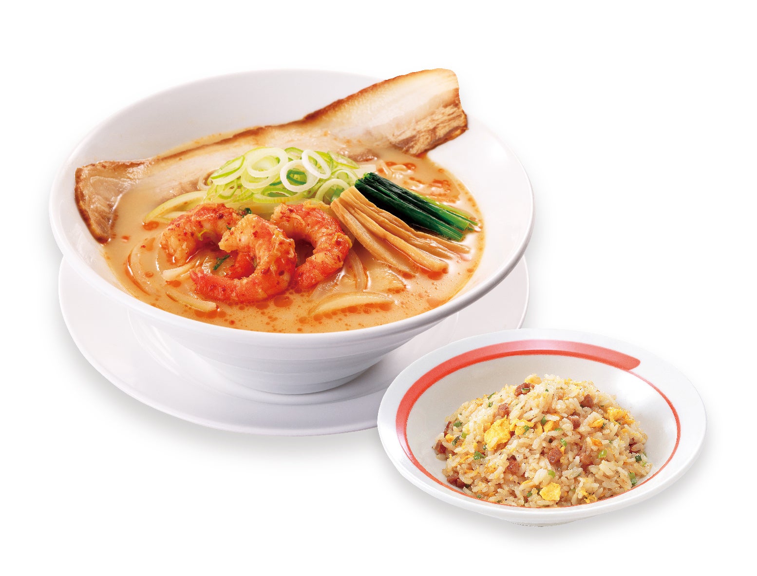 トッピングのエビはプリッとした食感にこだわり、ニンニクと唐辛子のアクセントがスープの深みをさらに引き立てる満足度抜群の一杯です。また、70円~150円(税込)お得にお楽しみいただけるセットメニューもご用意しております。
