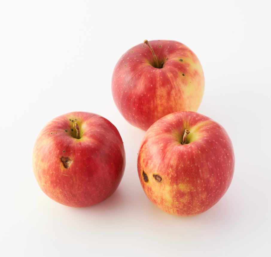 厳しい自然環境の中で環境に配慮した栽培方法で育成。気候変動の影響からか、今までにない虫害が発生したことにより、小さな黒点があるりんごです。(通称:ほくろりんご)見た目に個性はありますが、皮をむけば味や品質は正規品と変わりません。