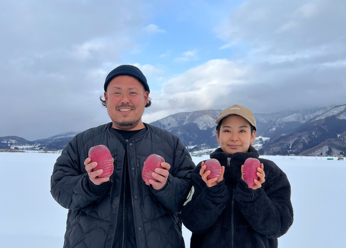 産地を覆い尽くす「雪」は、除雪の労力を強いる一方で、野菜を瑞々しく保つ天然の冷蔵庫でもあります。そんな現地の空気感を肌で感じていただくため、長野の紅くるり大根と現地の雪をそのまま箱に詰めてお届けする「体験型プレゼント」を実施します。
