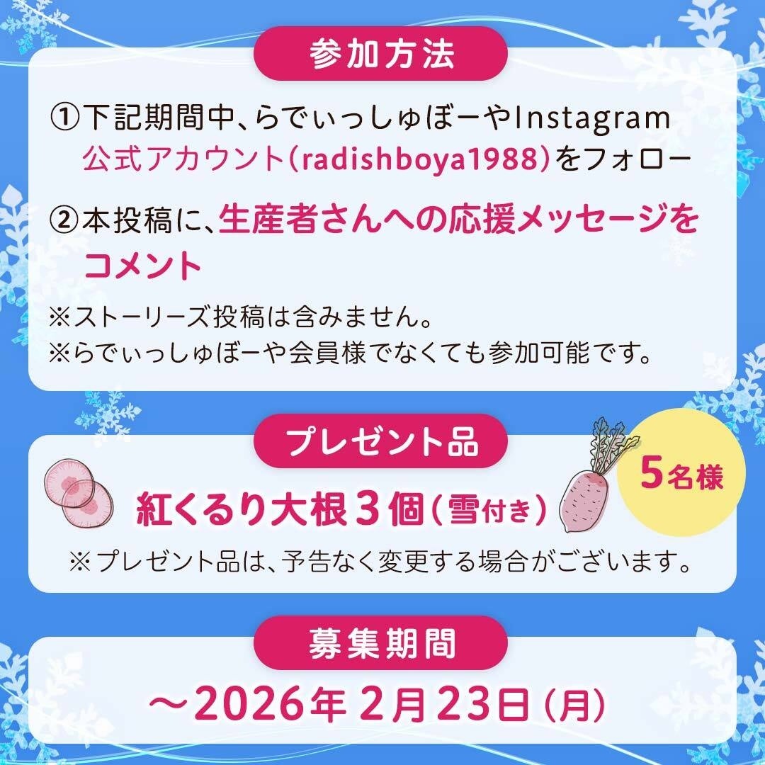 名称:雪付き!紅くるり大根プレゼントキャンペーン