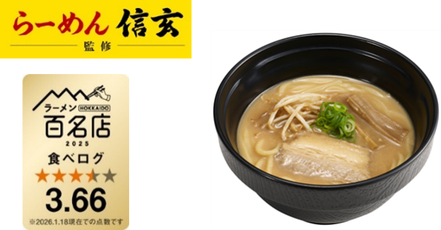 スシローのラーメンは2014年4月から販売を開始し、すしに合う味を徹底追求した“すし屋のラーメン”シリーズをはじめ、これまでに140種類以上のラーメンやまぜそばなどを開発してきました。現在、日本各地のラーメンの名店のおいしさを多くの方々に知っていただきたい、というスシローと食べログの想いが合致して、「スシロー×食べログ」全国名店監修シリーズを実施しております。このシリーズでは、食べログで高評価を獲得しているラーメンの名店や「食べログ ラーメン 百名店」選出店に監修いただいたラーメンをスシローで販売しております。2月18日(水)からは、食べログ点数3.66の高評価を獲得している北海道の人気店監修のラーメンが登場します。