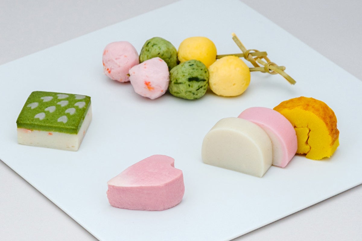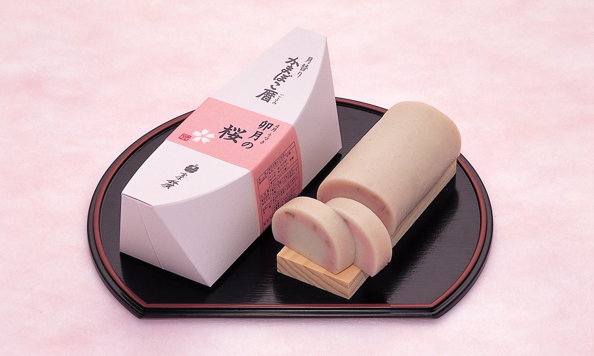 和歌に登場する四季を職人手づくりの細工かまぼこで表現しました。桜をイメージした商品の詰合せ。