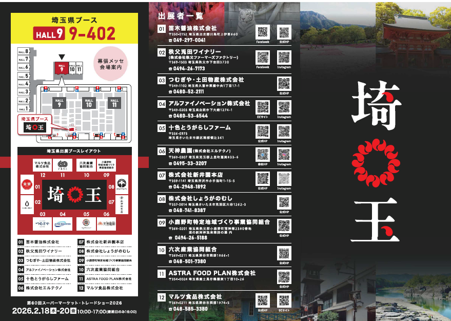 埼玉県では、食品製造事業者の販路開拓を支援するため、国内最大級の食品展示商談会である「第60回スーパーマーケット・トレードショー2026」に、県内中小事業者による「埼玉県ブース」を出展します。