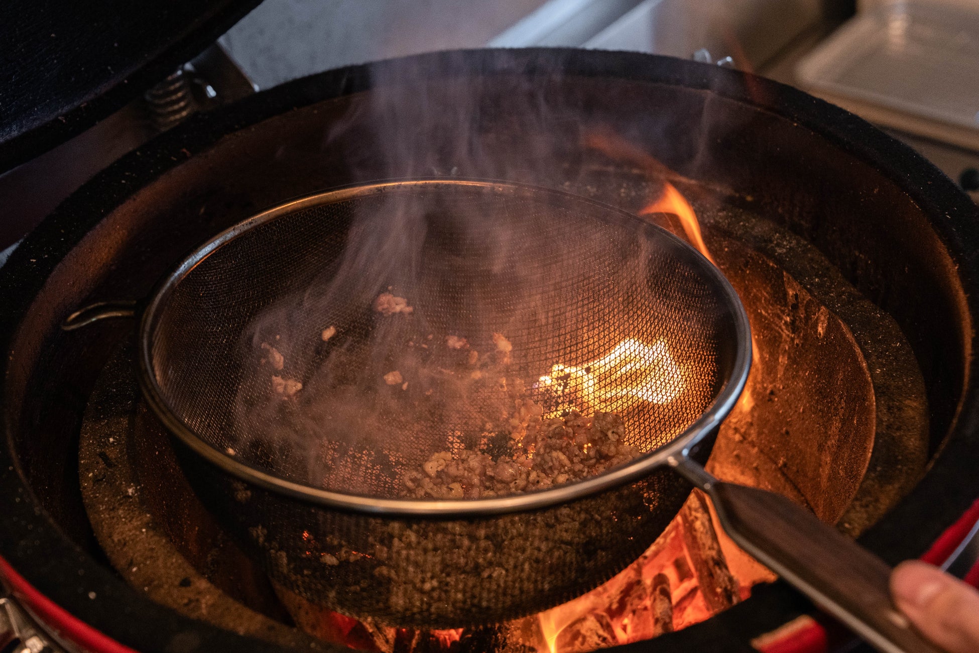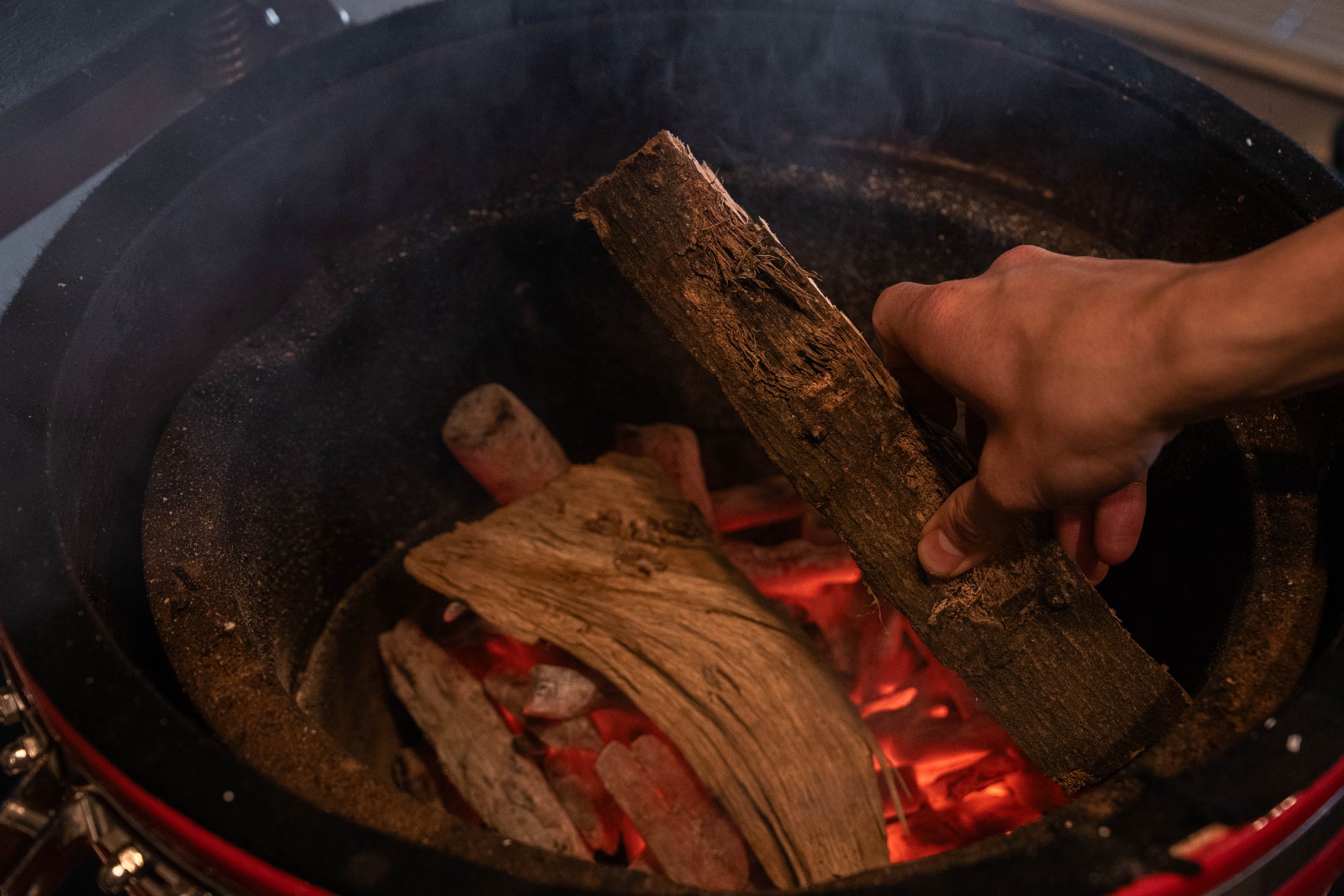 ■ 特徴2 唯一無二の「三種火入れ方」:蒸し竈 × 炭 × 薪