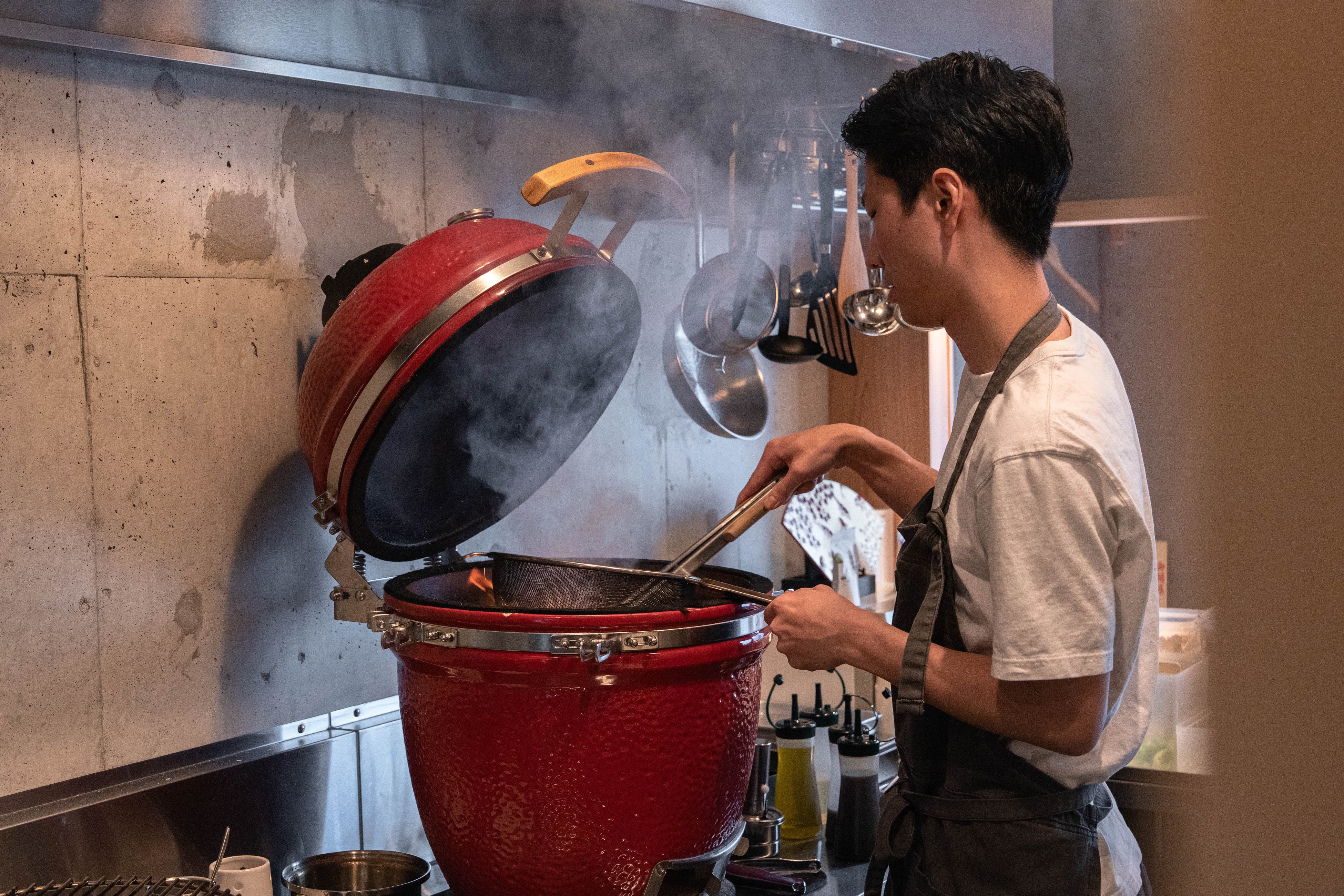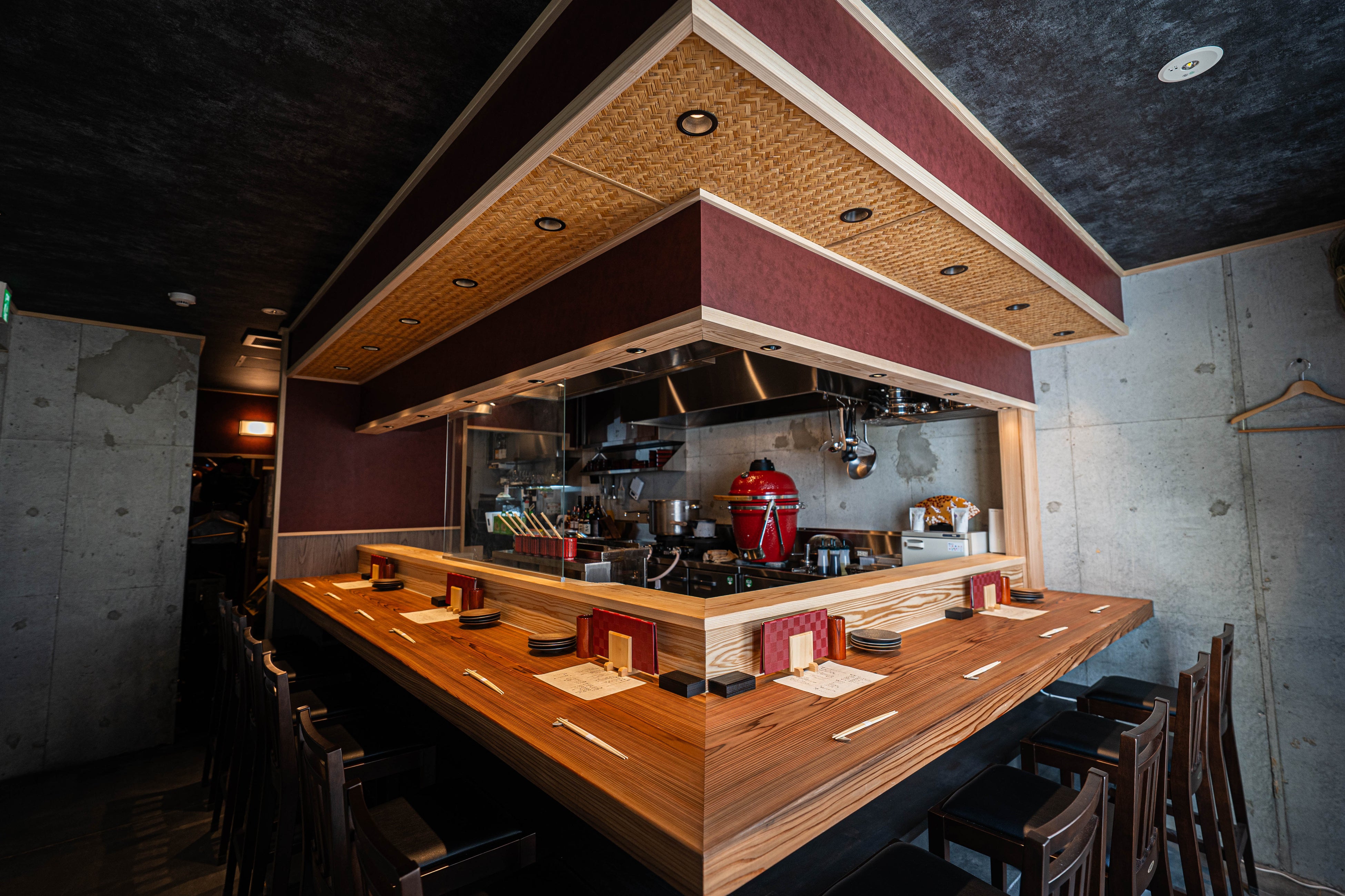 国内製造の「蒸し竈(むしかまど)」に加え、炭と薪を使い分ける松本が生み出した独自の“三種火入れ方”で、素材の旨みを最大限に引き出した串焼きを提供します。落ち着いた空間で、美味しいお酒とともに「最高級の火入れを、日常の贅沢に」を叶える大人のための一軒です。