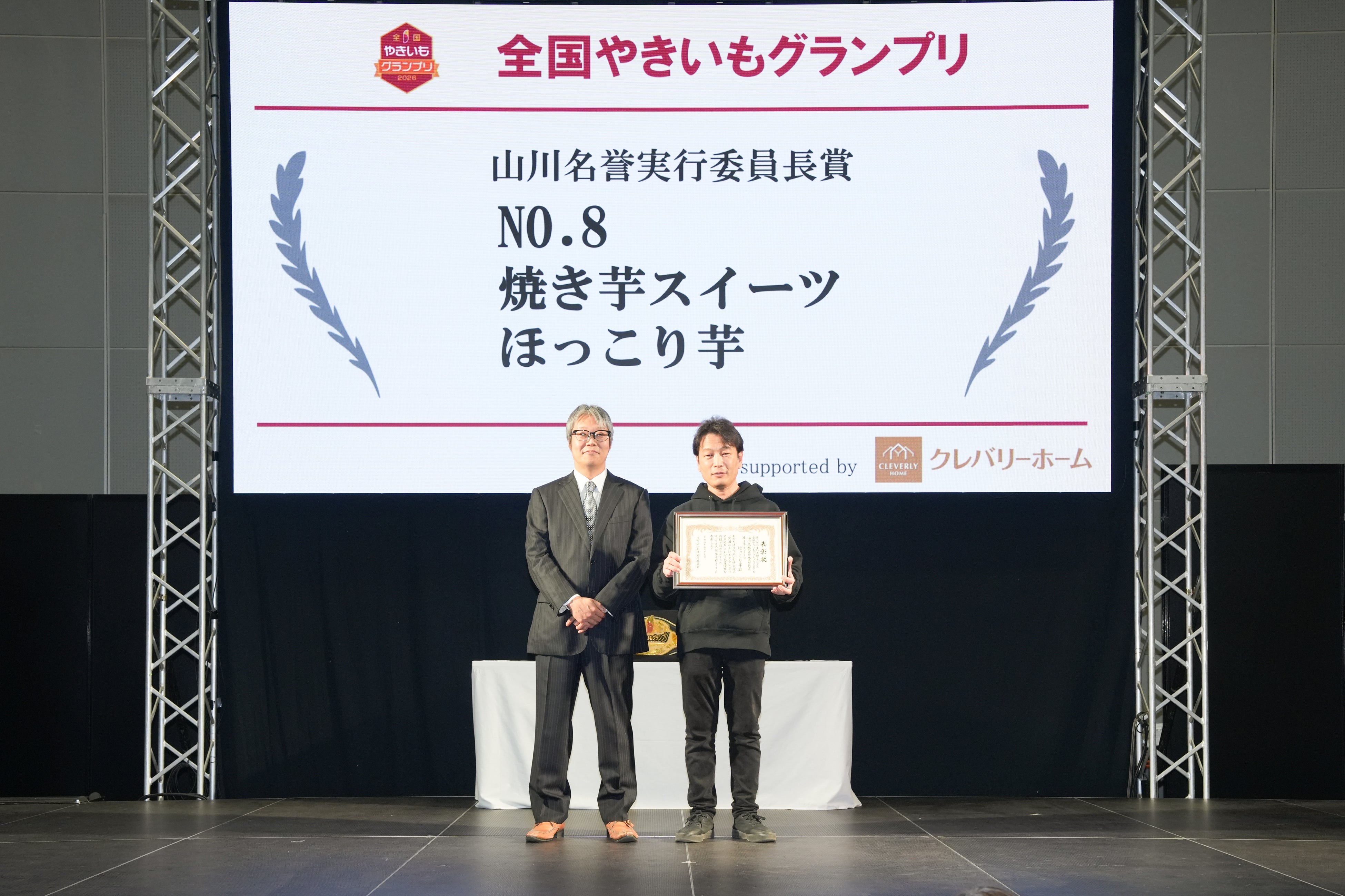 それらの票数に加え、山川名誉実⾏委員長、日本さつまいもサミット2025-2026受賞生産者、スポンサーのクレバリーホーム様、全国やきいもグランプリ殿堂入り店舗、そしてさつまいも博実⾏委員会それぞれの投票を加算し、その合計で最も多い票を獲得した店舗をチャンピオンとして決定しました。