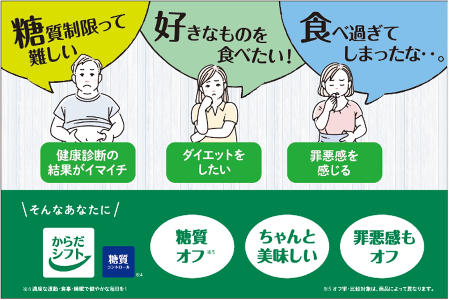 発売から9年目を迎える健康ブランド、からだシフト。実際にからだシフト「糖質コントロール」シリーズを購入しているお客様にインタビュー形式で調査※3を行い、隠れたニーズを掘り起こしました。