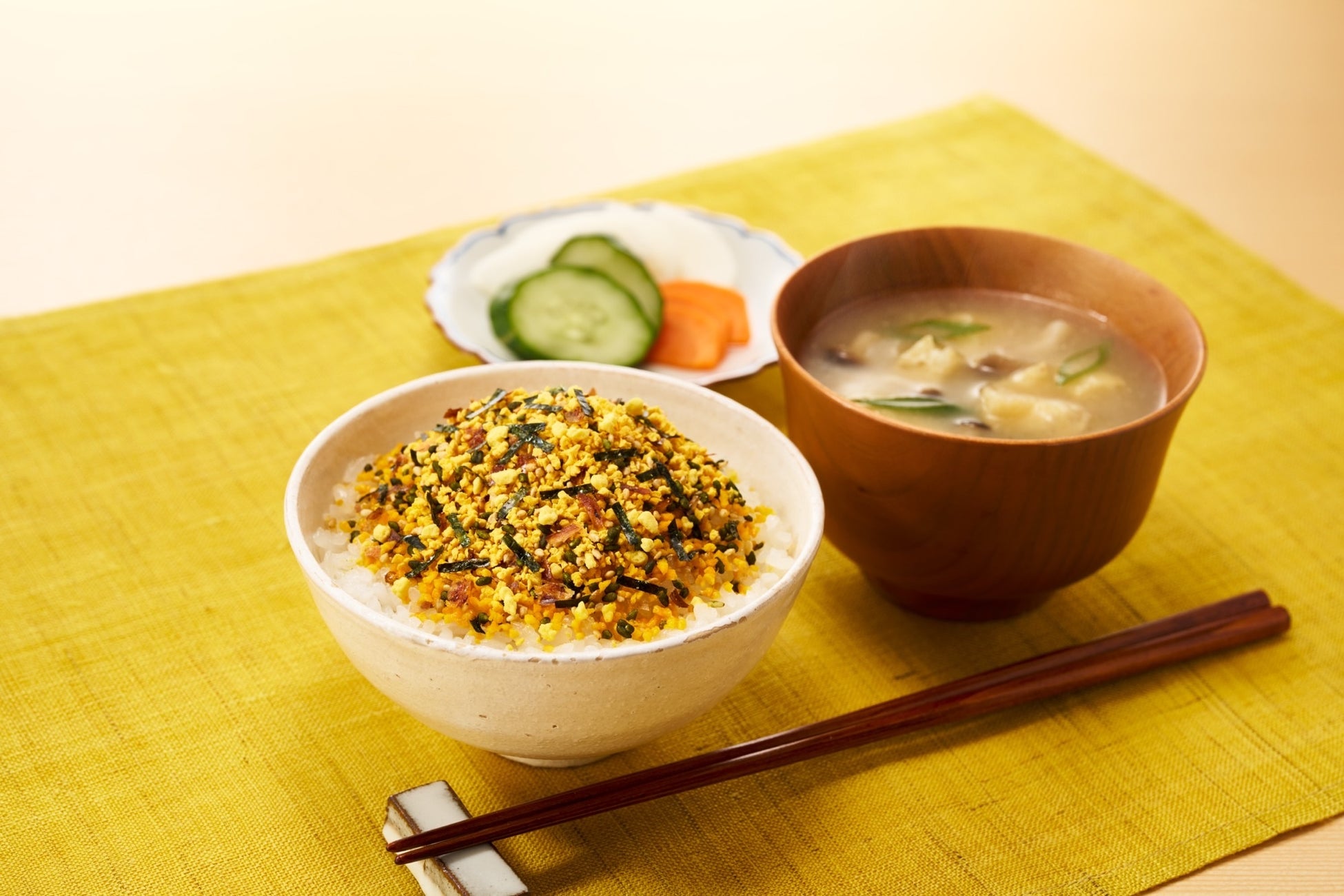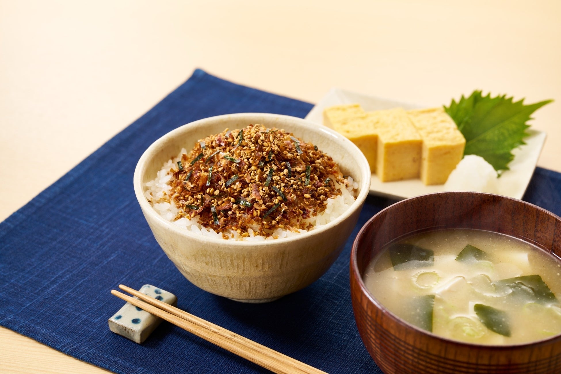 顆粒と海苔、魚の削り節など他の素材を組み合わせて、バランスの良い風味に仕上げており、ごはんだけでなく様々なアレンジレシピでも美味しく召し上がれます。