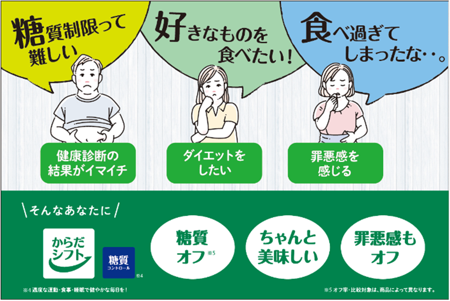 発売から9年目を迎える健康ブランド、からだシフト。実際にからだシフト「糖質コントロール」シリーズを購入しているお客様にインタビュー形式で調査※3を行い、隠れたニーズを掘り起こしました。