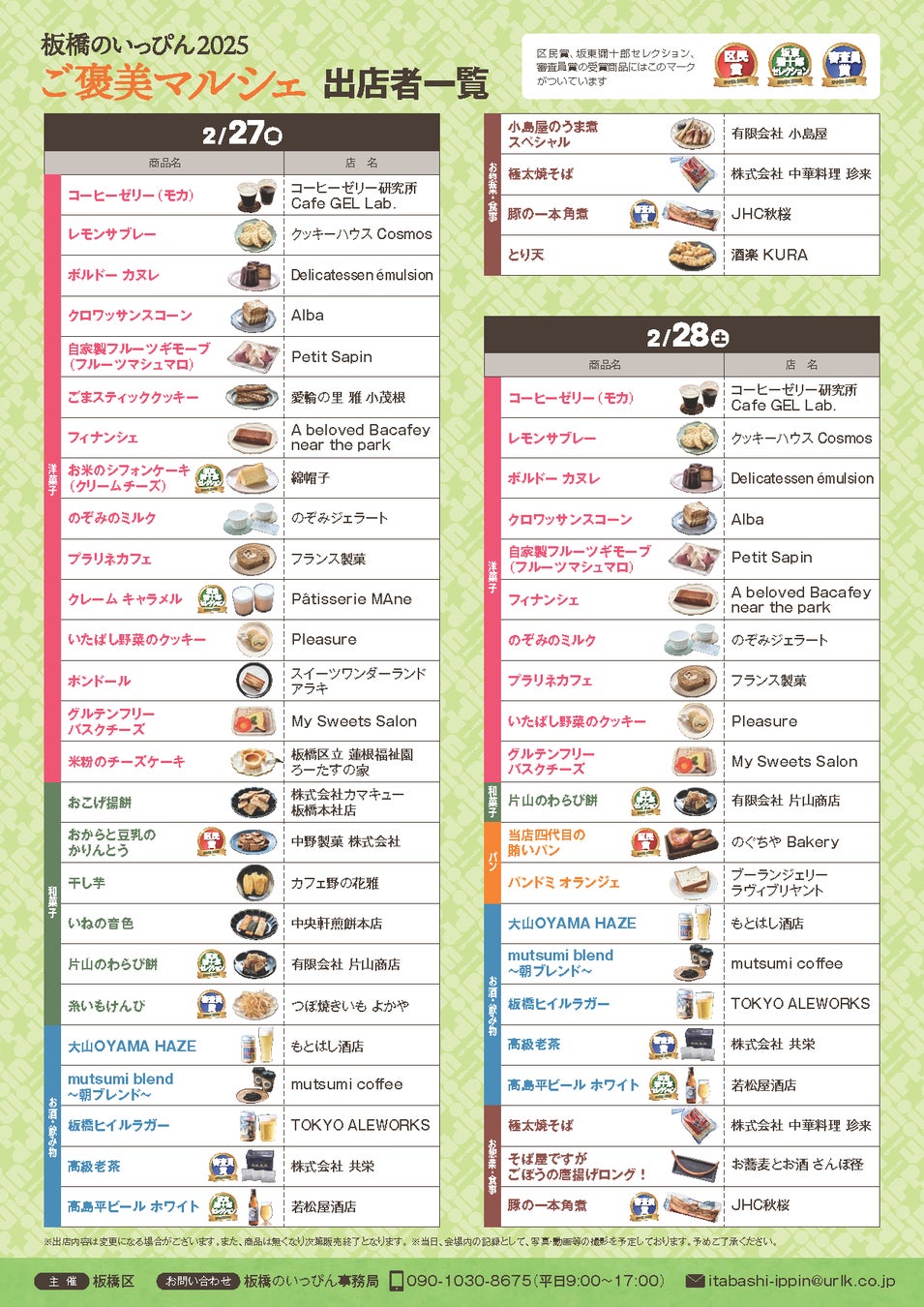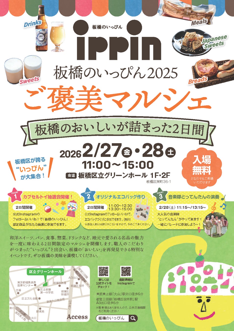 2月27日(金)・28日(土)に、板橋区を代表する食のブランド「板橋のいっぴん」の即売会「板橋のいっぴん2025ご褒美マルシェ」を開催。33店舗の魅力的な品々が皆さんのお口を彩ります。