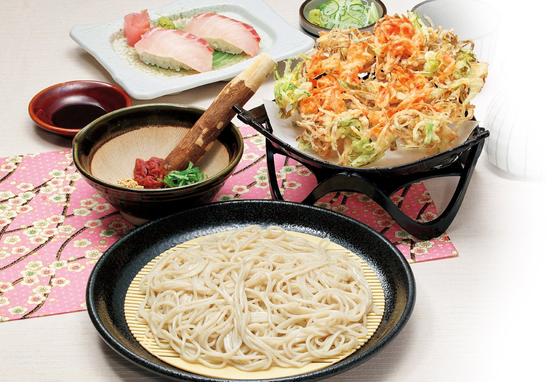 『桜海老の大判かき揚げと更科蕎麦』真鯛のにぎり寿司2貫セット